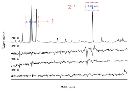 3.4. GC-EAD and GC-MS Analysis of Volatile Compounds from Maize at Key Growth Stages