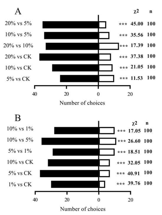 - Liu, J.; Tallat, M.; Wang, G.; Li, G.; Zhang, H.; Wu, X.; Qiao, H.; Zhao, X.; Feng, H. The utility of visual and olfactory maize leaf cues in host finding by adult Spodoptera frugiperda (Lepidoptera: Noctuidae). Plants 2024, 13, 3300. [Google Scholar] [CrossRef] [PubMed]