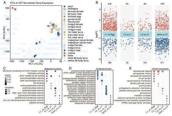 4.1. Differential Expression Analysis Reveals Gene Expression Dynamics During Key Developmental Transitions in Colorado Potato Beetle
