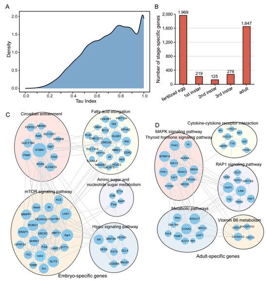 2.3. Identification of Stage- and Tissue-Specific Genes