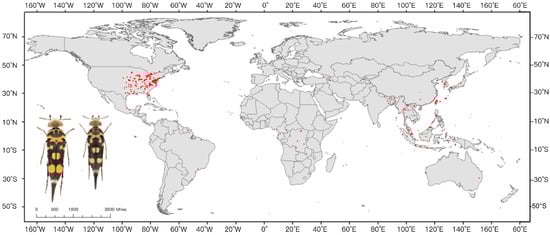 - Liu, Y.; Erwin, T.L.; Yang, X. Mordellidae (Coleoptera) research: A review based on the zoological record from 1864 through 2013. Insects 2018, 9, 113. [Google Scholar] [CrossRef] [PubMed]