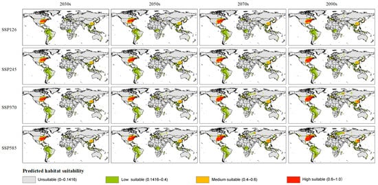 4.2. Changes in the Potential Suitable Habitat of Glipa Under Future Climate Scenarios