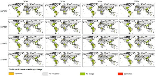 2.5. Analysis of Suitable Habitats and Their Variation