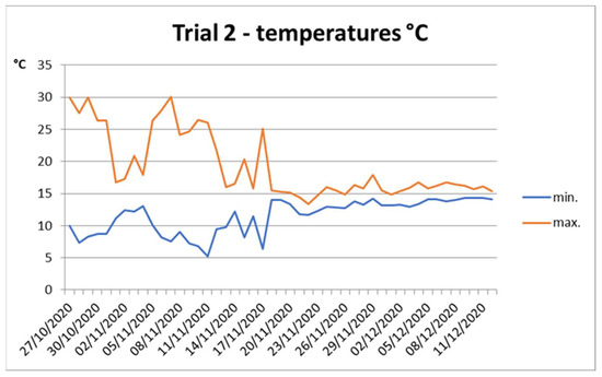 The biomass was collected from freshly chopped Crotalaria juncea grown in the cultivated fields in Budrio, Bologna province, Italy, in October (Table 1). It included all parts of the plant. The biomass was immediately stored in refrigerated containers for transportation and then in a stable refrigerator until it was time to incorporate it into the pots. Still frozen, it was broken by hand and mixed evenly with the entire volume of pot soil. The experiment temperature ranged from 5 °C to 30 °C.