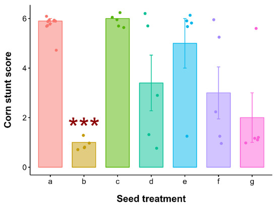 - Bhirud, K.M.; Pitre, H.N. Bioactivity of systemic insecticides in corn: Relationship to leafhopper vector control and corn stunt disease incidence. J. Econ. Entomol. 1972, 65, 1134. [Google Scholar] [CrossRef]