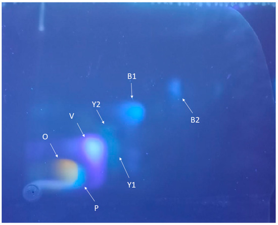 3.1. Identification of Fluorescent Compounds Separated by TLC