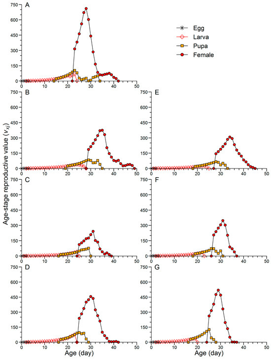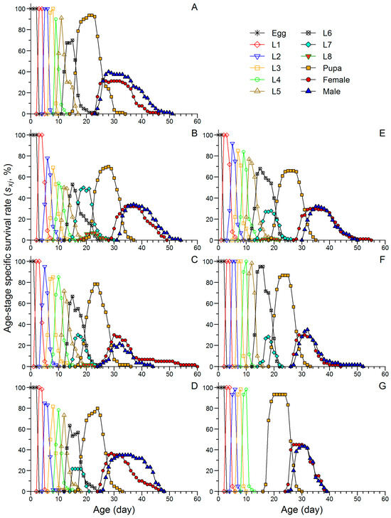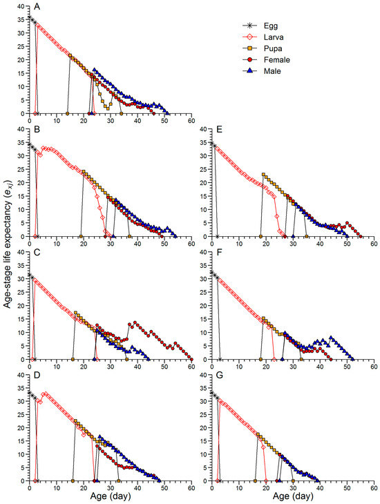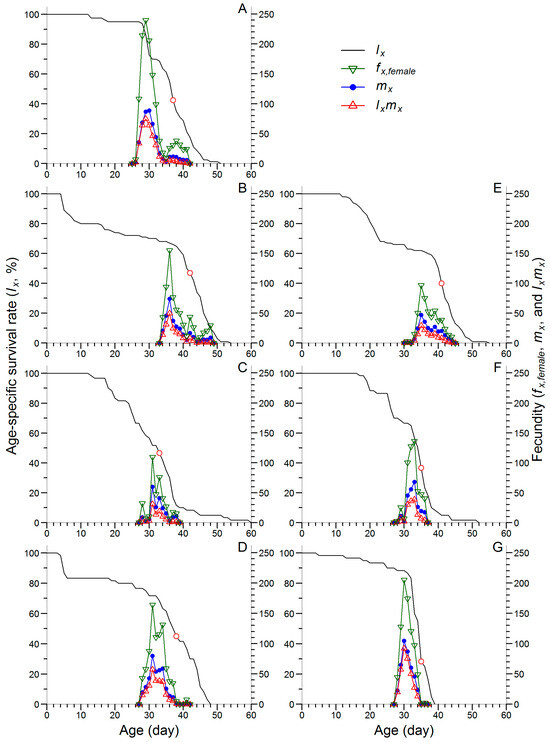 - Chi, H.; You, M.; Atlıhan, R.; Smith, C.L.; Kavousi, A.; Özgökçe, M.S.; Güncan, A.; Tuan, S.-J.; Fu, J.-W.; Xu, Y.-Y. Age-Stage, two-sex life table: An introduction to theory, data analysis, and application. Entomol. Gen. 2020, 40, 103–124. [Google Scholar] [CrossRef]