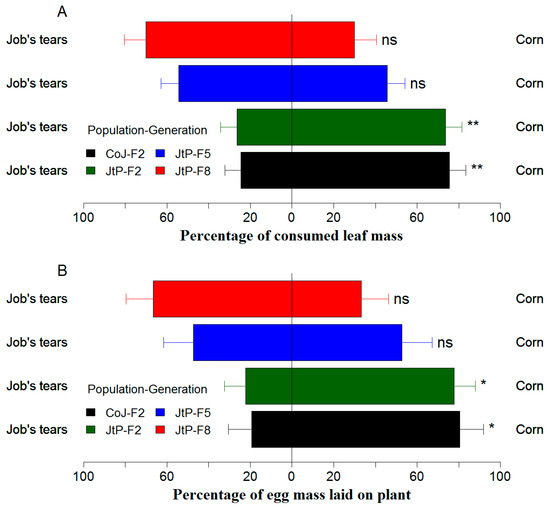 - Li, D.; Zhi, J.; Zhang, T.; Ye, J.; Yu, Y.; Hu, C. Preference of Spodoptera frugiperda to four plants. Plant Prot. 2019, 45, 50–54. (In Chinese) [Google Scholar] [CrossRef]