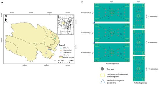Distribution of sampling points in different aster sample sites (A) and map of sample plot settings (B).