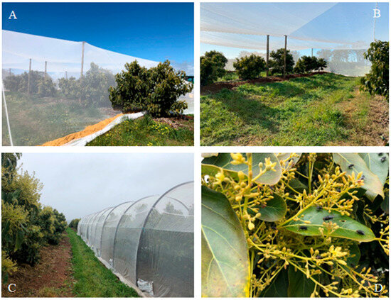 - Cook, D.F.; Voss, S.C.; Deyl, R.A.; Howse, E.T.; Foley, J.; Norrish, B.; Delroy, N.; Shivananjappa, S.L. Blow flies (Diptera: Calliphoridae) ability to pollinate Hass avocado (Persea americana) trees within paired tree enclosures. J. Appl. Entomol. 2023, 147, 577–591. [Google Scholar] [CrossRef]