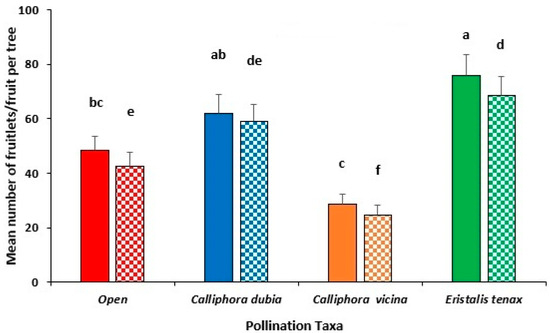 - Jarlan, A.; De Oliveira, D.; Gingras, J. Pollination by Eristalis tenax (Diptera: Syrphidae) and seed set of greenhouse sweet pepper. J. Econ. Entomol. 1997, 90, 1646–1649. [Google Scholar] [CrossRef]