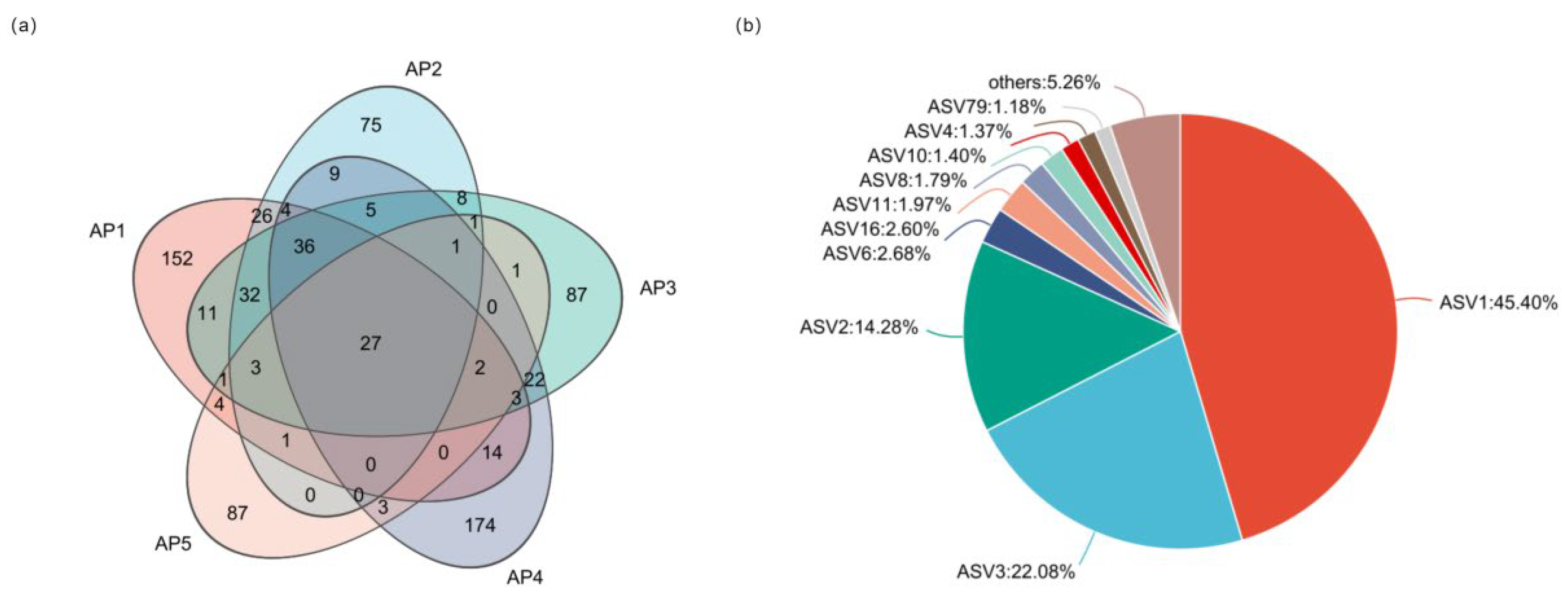- Benjamin, J.C.; Paul, J.M.; Michael, J.R.; Andrew, W.H.; Amy, J.A.; Susan, P.H. DADA2: High-resolution sample inference from Illumina amplicon dada. Nat. Methods 2016, 13, 581–583. [Google Scholar]