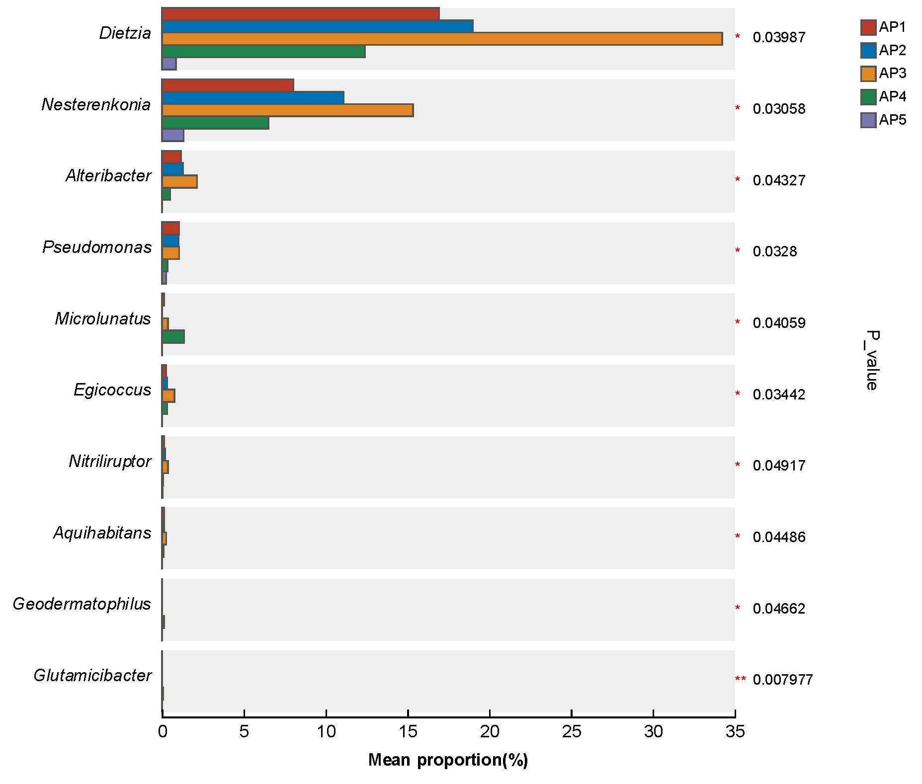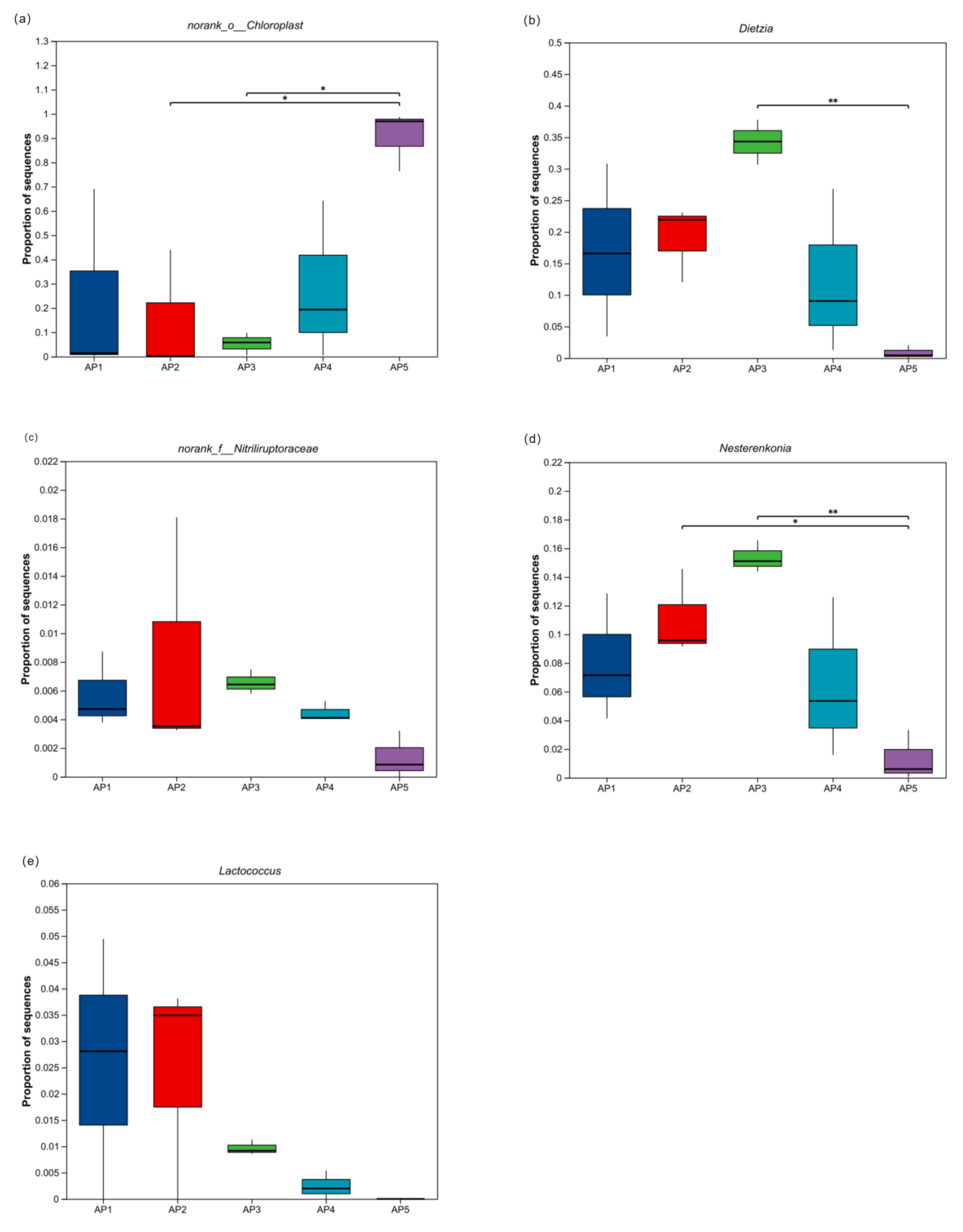 3.2. Composition and Differences In The Gut Microbiota in A. pernyi Larvae