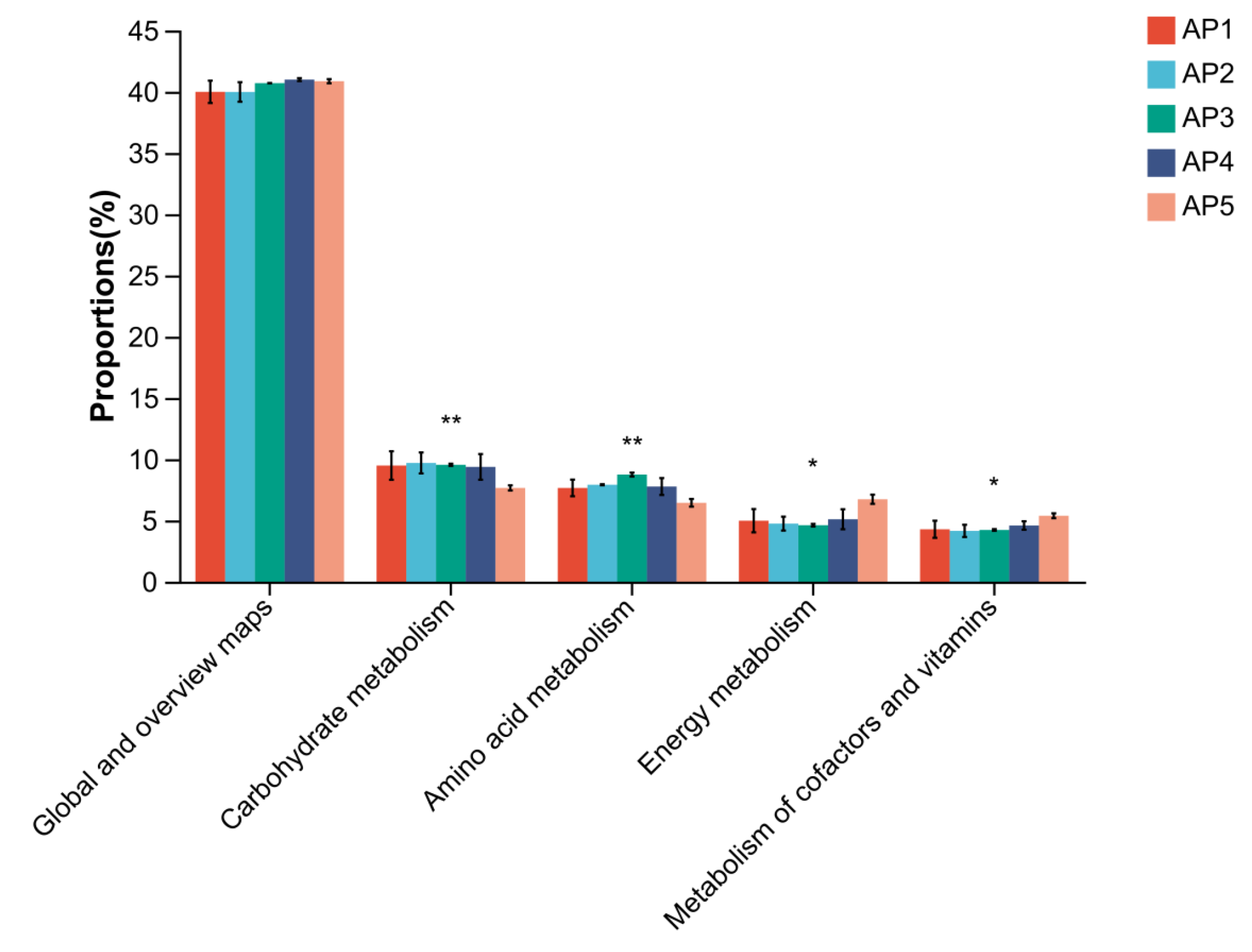 3.4. Functional Prediction of Gut Microbiota in A. pernyi Larvae Across Different Instars