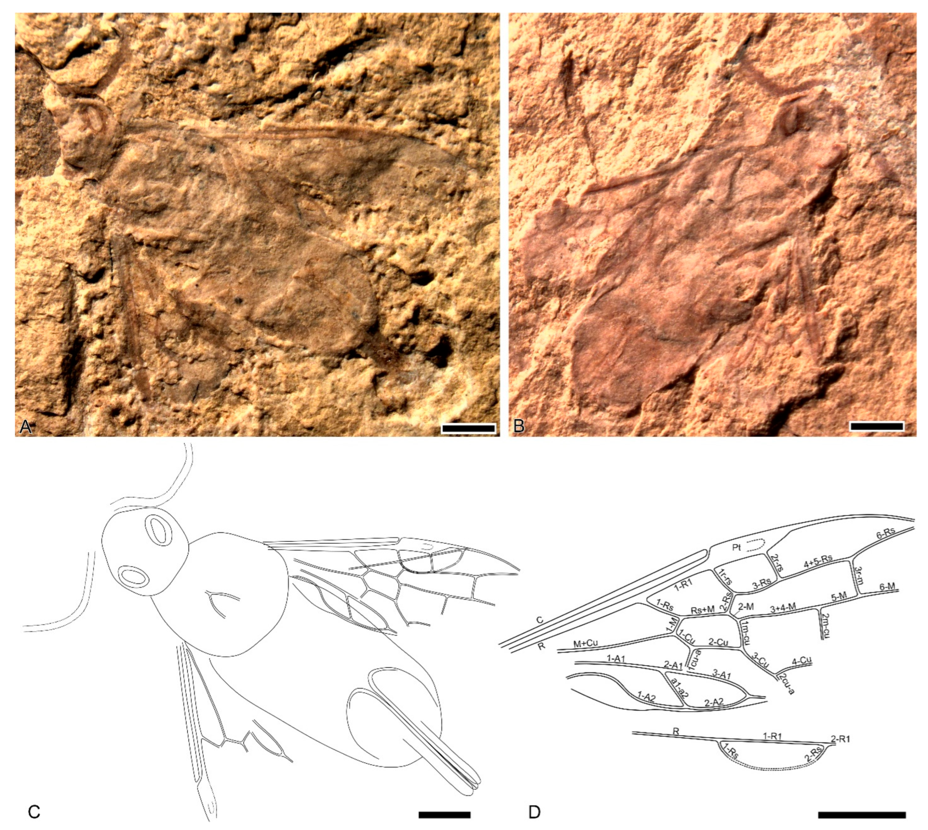 - Radnitsyn, A.P.; Jarzembowski, E.A.; Ross, A.J. Wasps (Insecta: Vespida=Hymenoptera) from the Purbeck and Wealden (Lower Cretaceous) of Southern England and Their Biostratigraphical and Palaeoenvironmental Significance. Cretac. Res. 1998, 19, 329–391. [Google Scholar] [CrossRef]