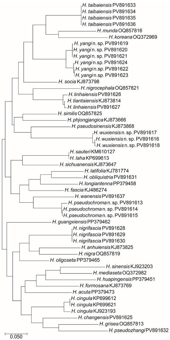 The genetic distance between H. laha and H. sauteri is 0.0, which indicates that they are the same species. The two species were discussed and synonymized by Ye et al. [27].