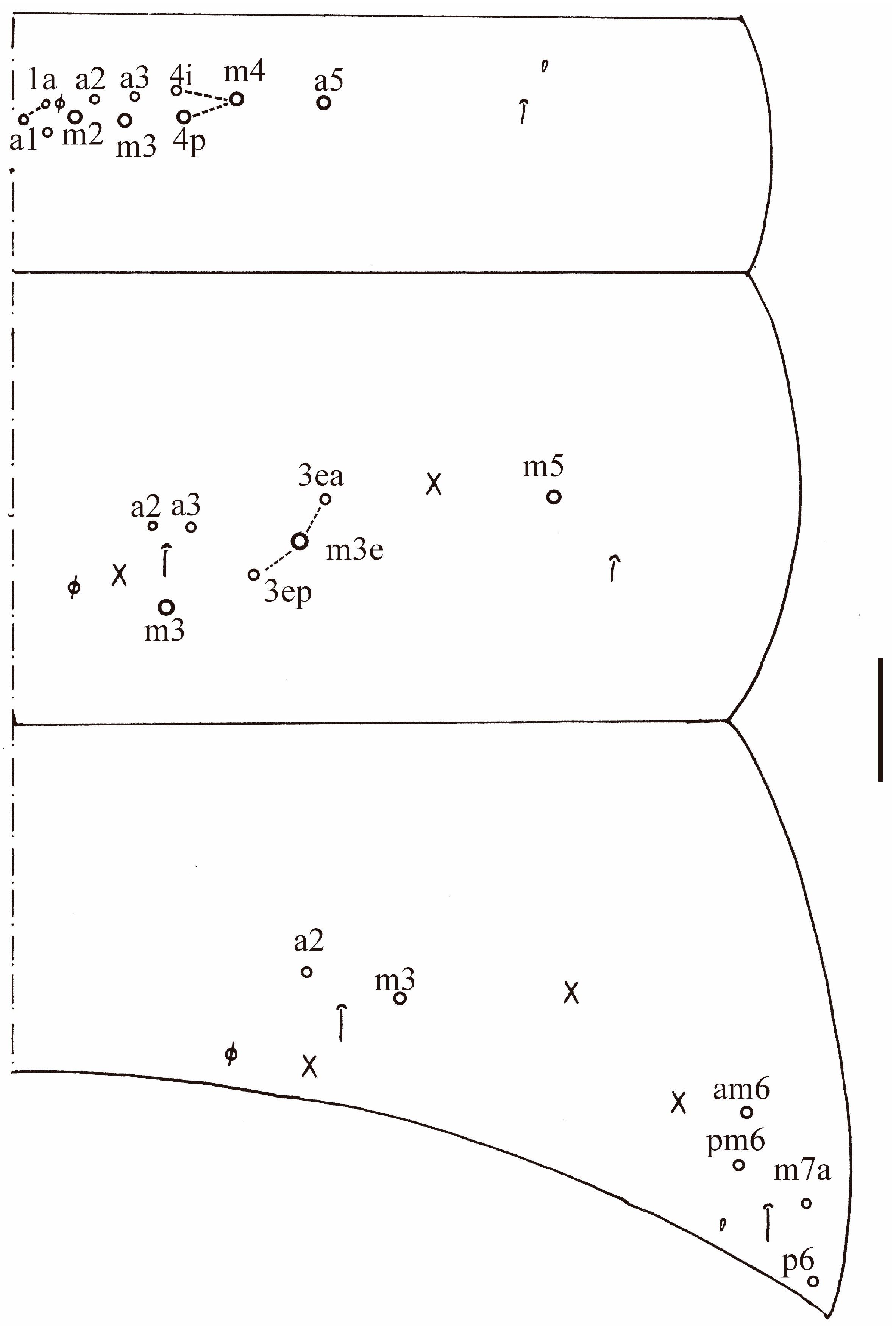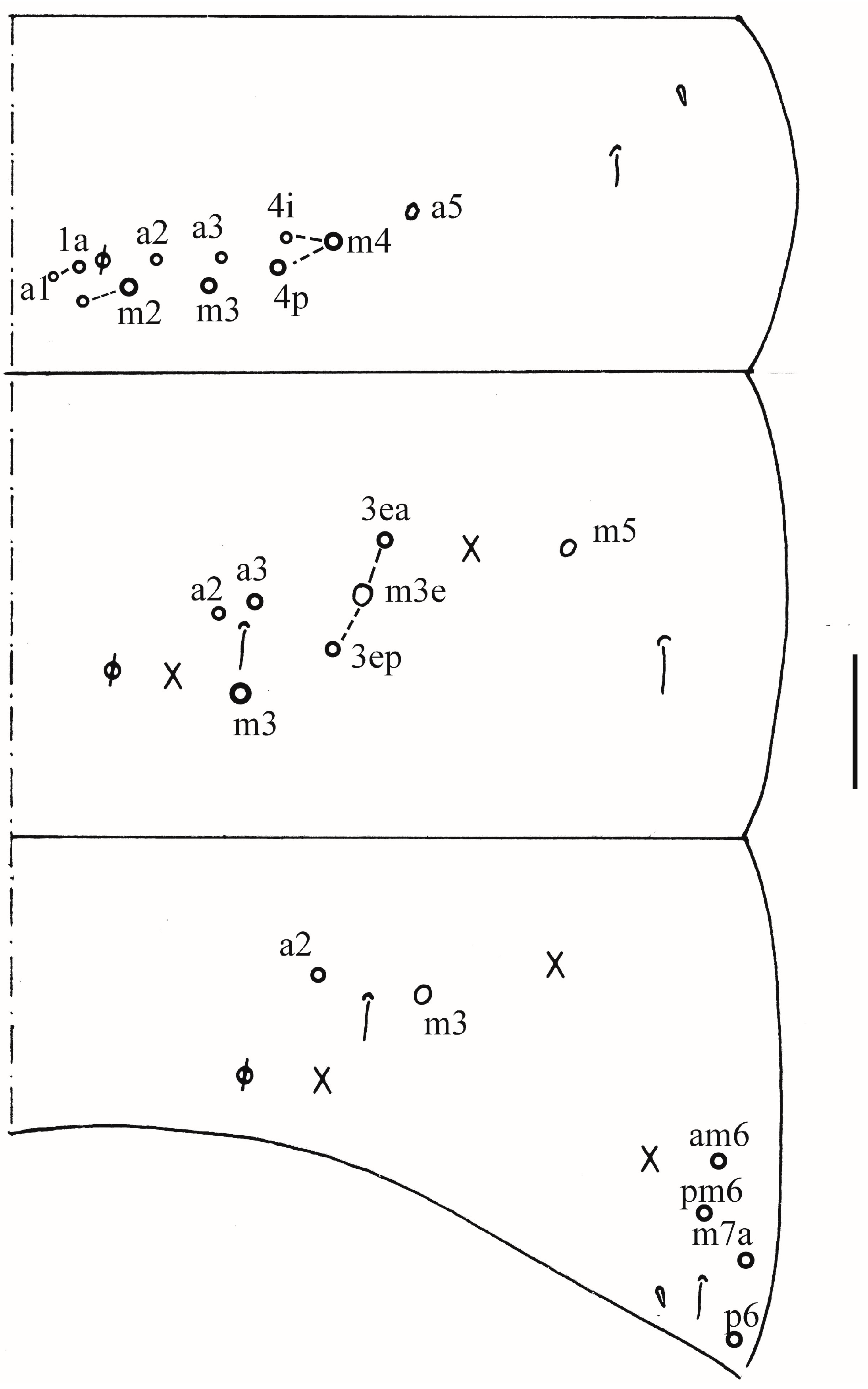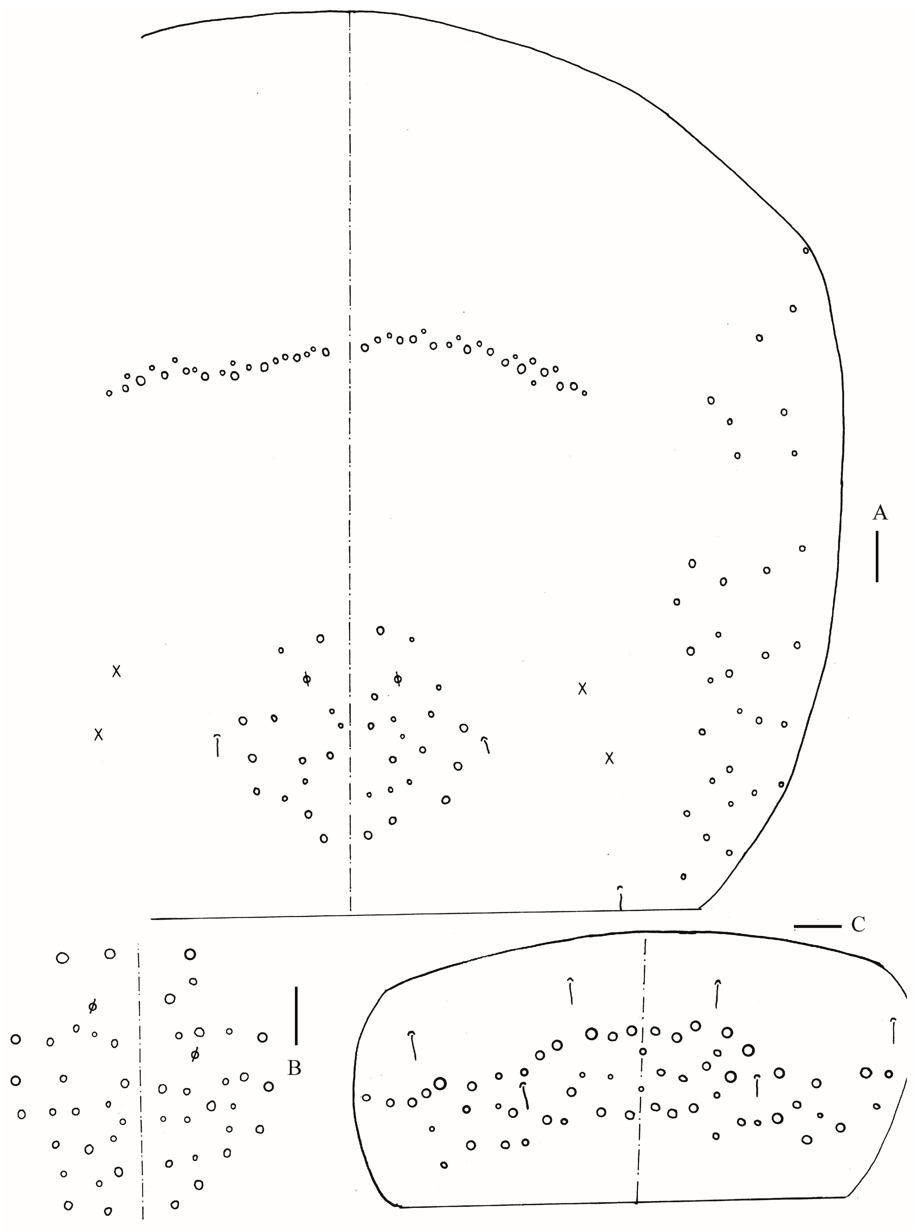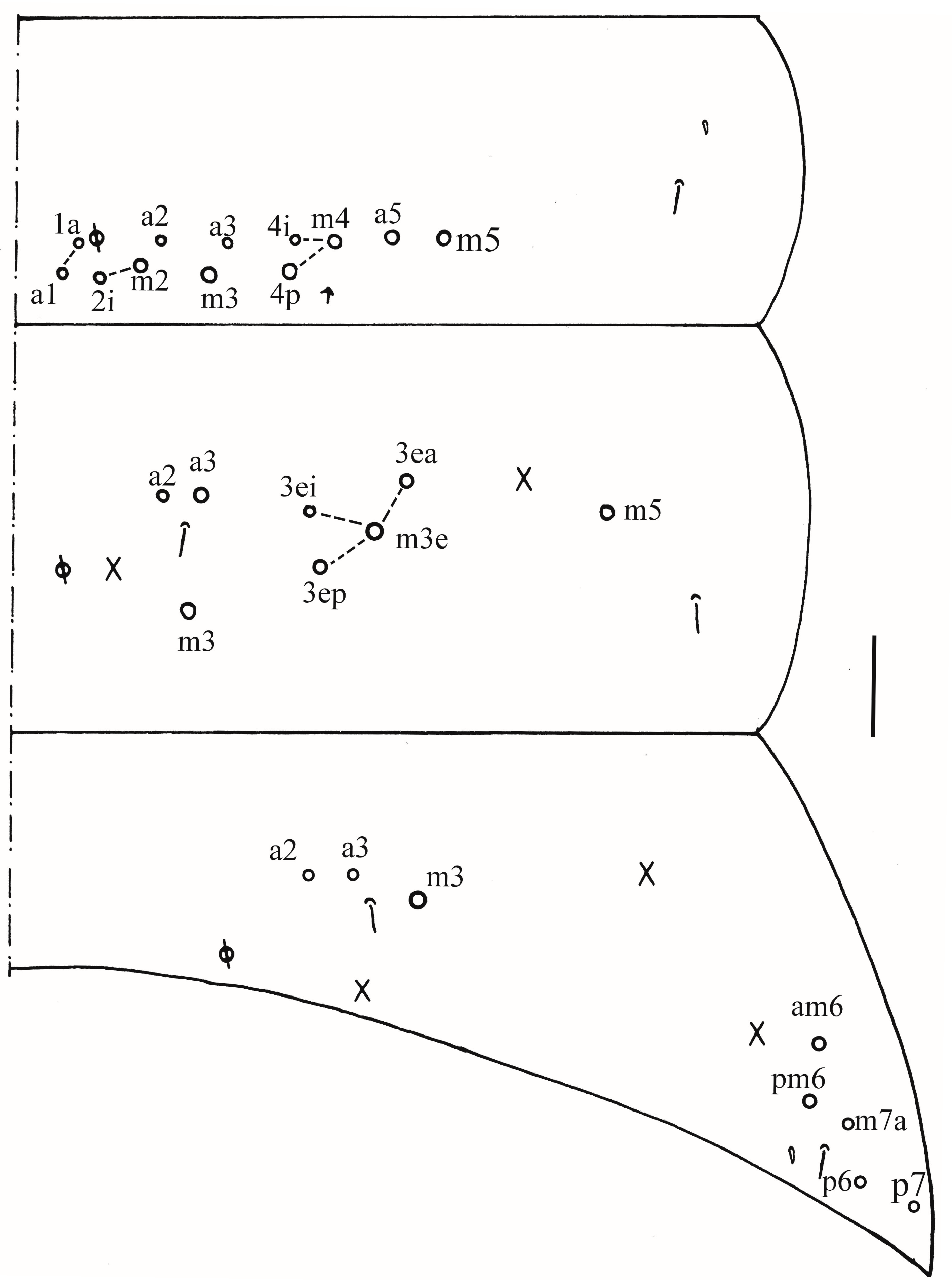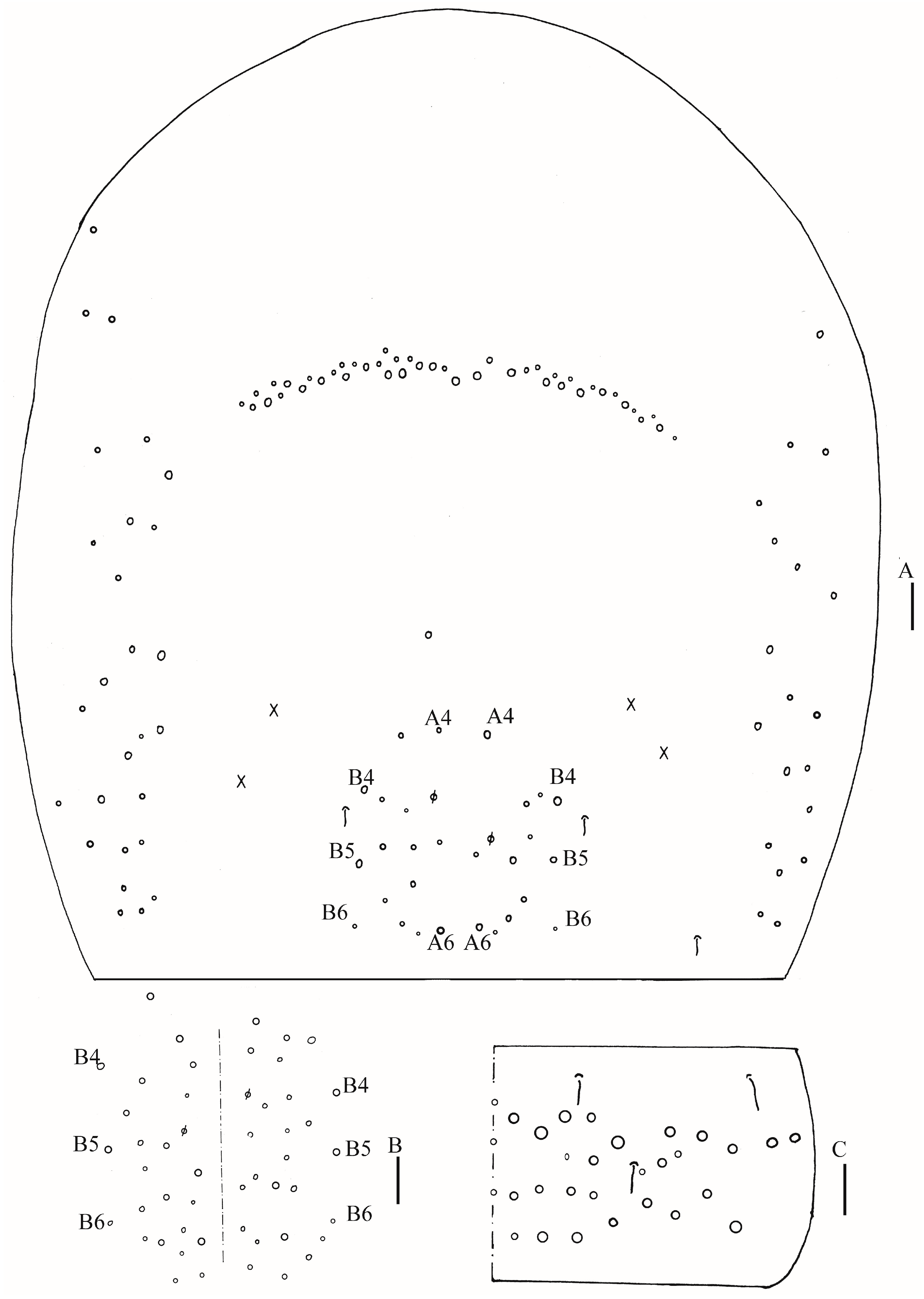 Central mac on Abd. IV anteriorly | 9 | 3–4 | 2 |