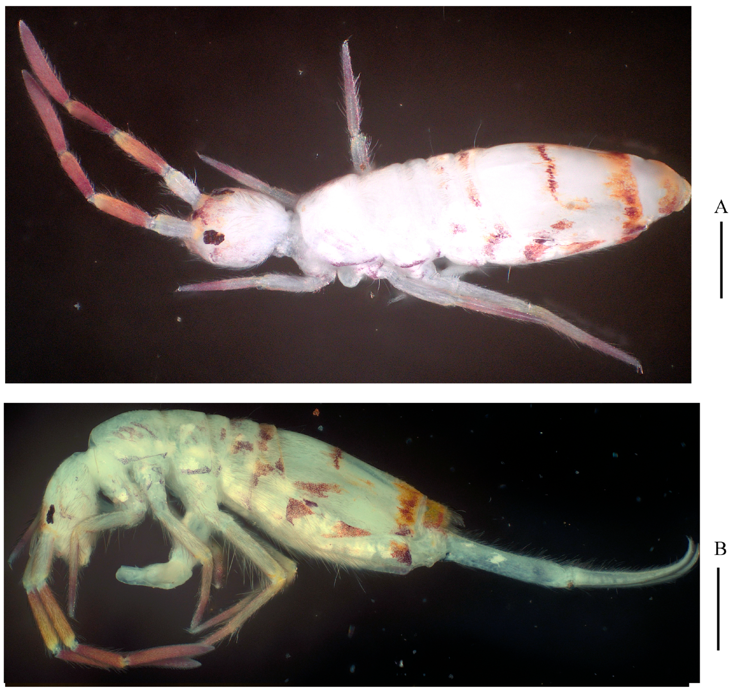 - Zhou, R.; Ma, Y.T. New records and two new species of Entomobryinae (Collembola: Entomobryidae) from China. Orient. Insects 2023, 57, 756–784. [Google Scholar] [CrossRef]