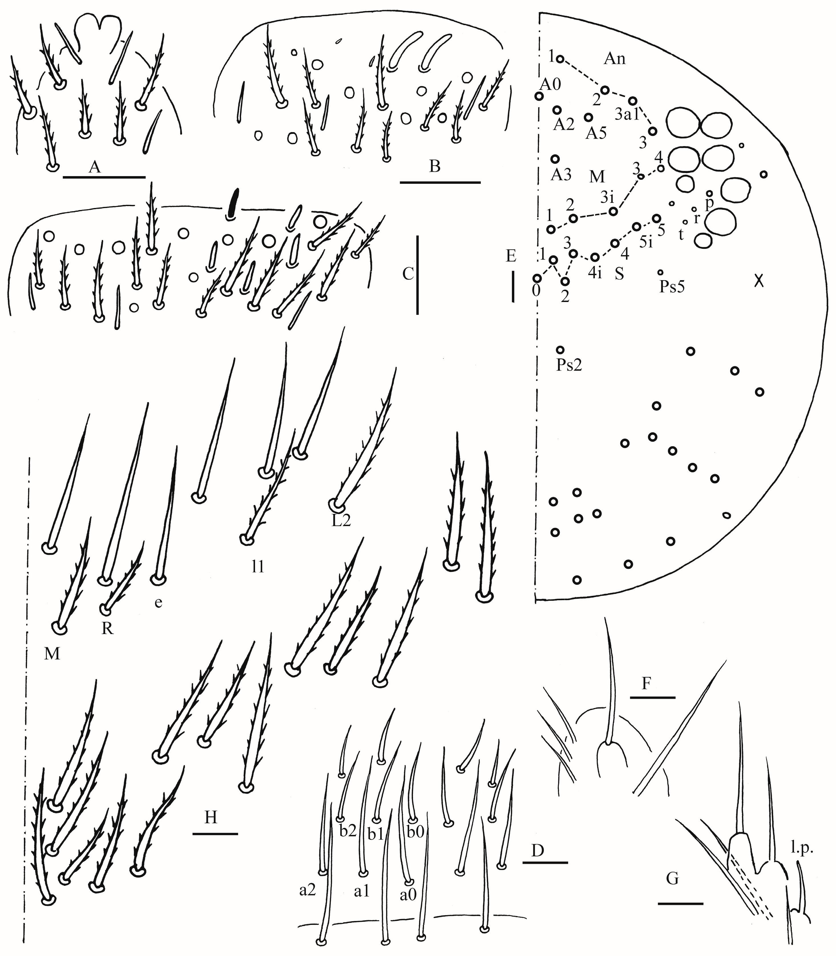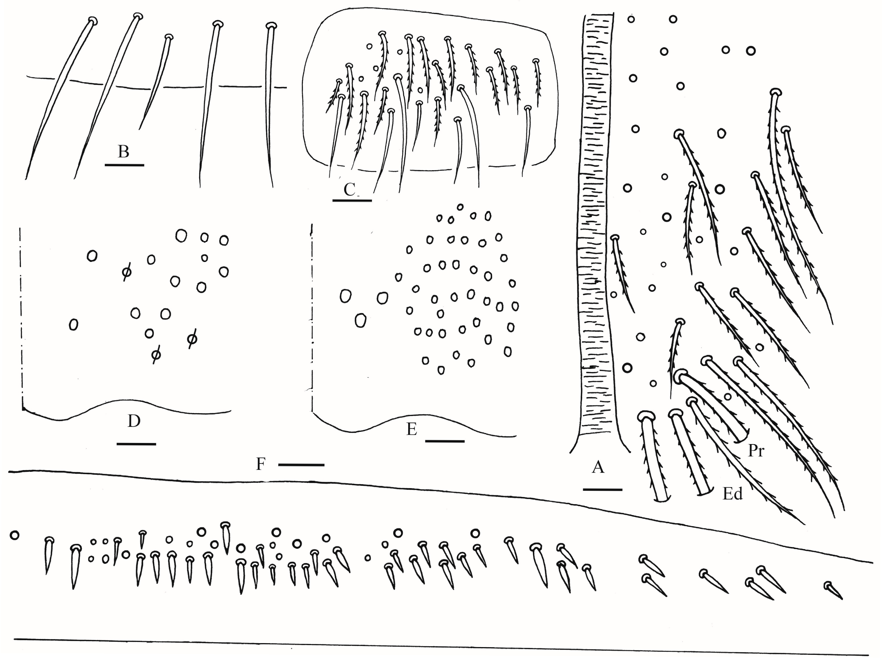 H. wanensis Pan & Ma, 2021 | H. oligoseta Zhou, Huang & Ma, 2024 | H. similis Szeptycki, 1973 | H. cingula (Börner, 1906) |