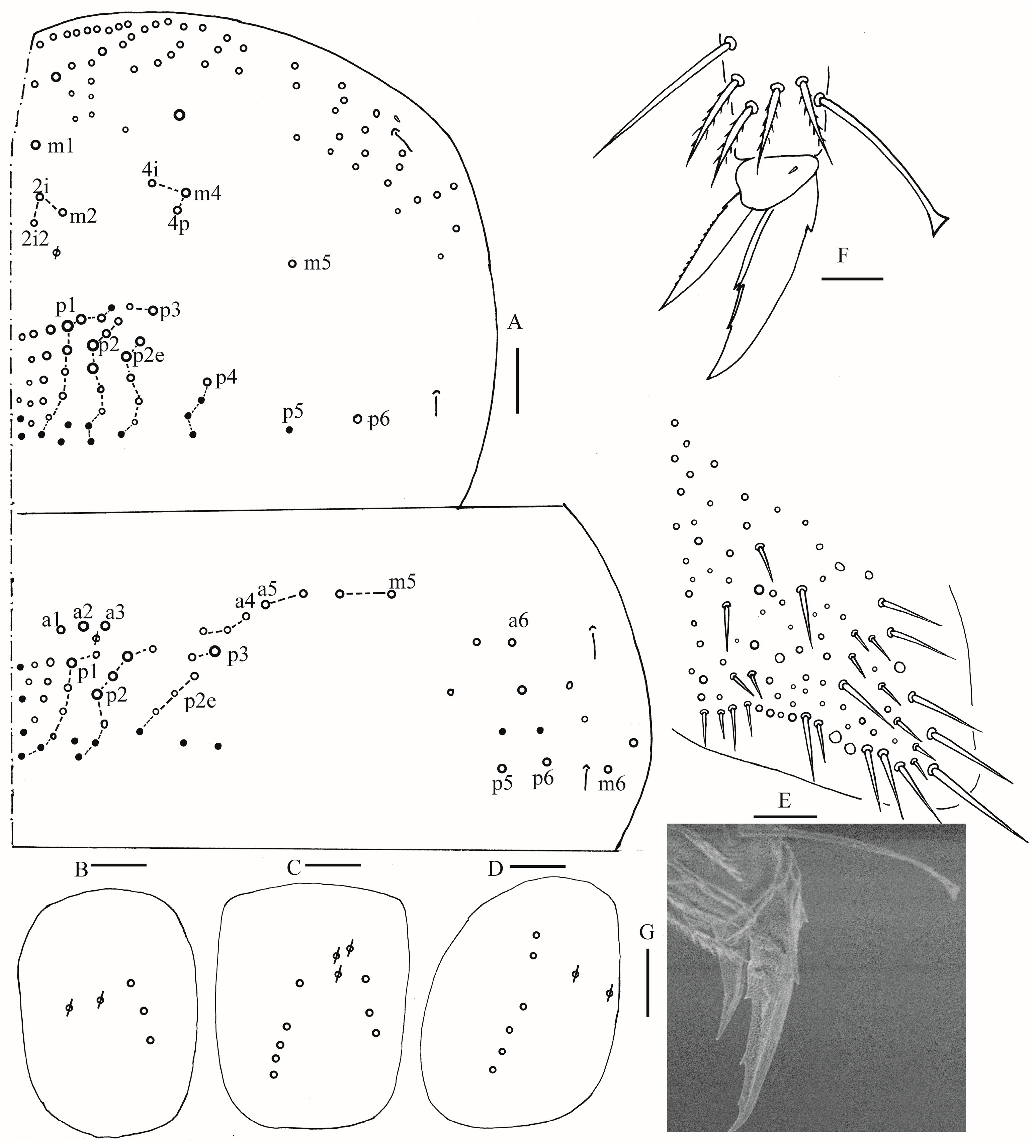 - Szeptycki, A. Morpho-Systematic Studies on Collembola. IV. Chaetotaxy of the Entomobryidae and Its Phylogenetical Significance; Polska Akademia Nauk: Kraków, Poland, 1979; pp. 1–219. [Google Scholar]