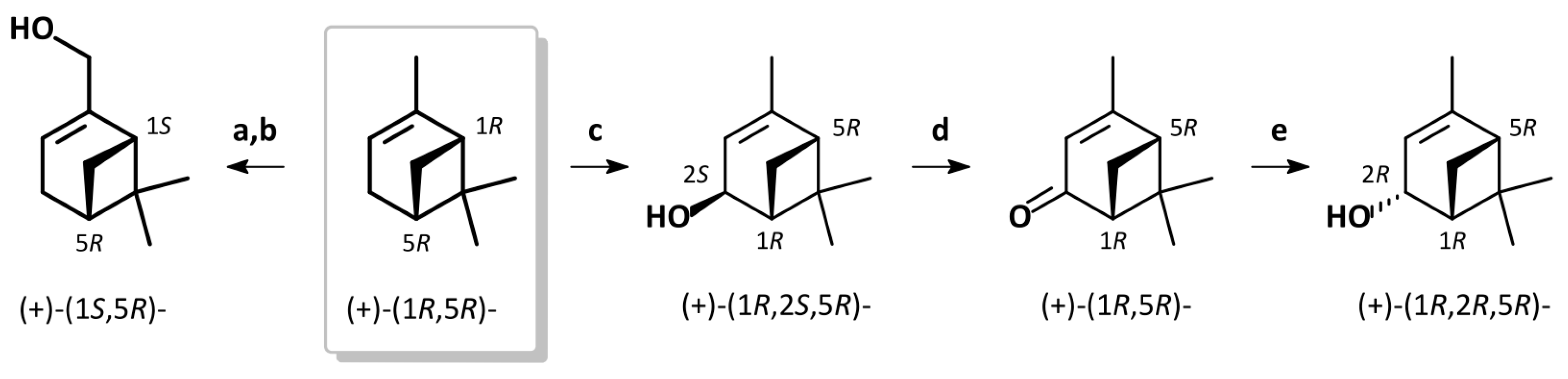 - Mori, K.; Mizumachi, N.; Matsui, M. Synthesis of optically pure (1S,4S,5S)-2-pinen-4-ol (cis-verbenol) and its antipode, the pheromone of Ips bark beetles. Agric. Biol. Chem. 1976, 40, 1611–1615. [Google Scholar] [CrossRef]
