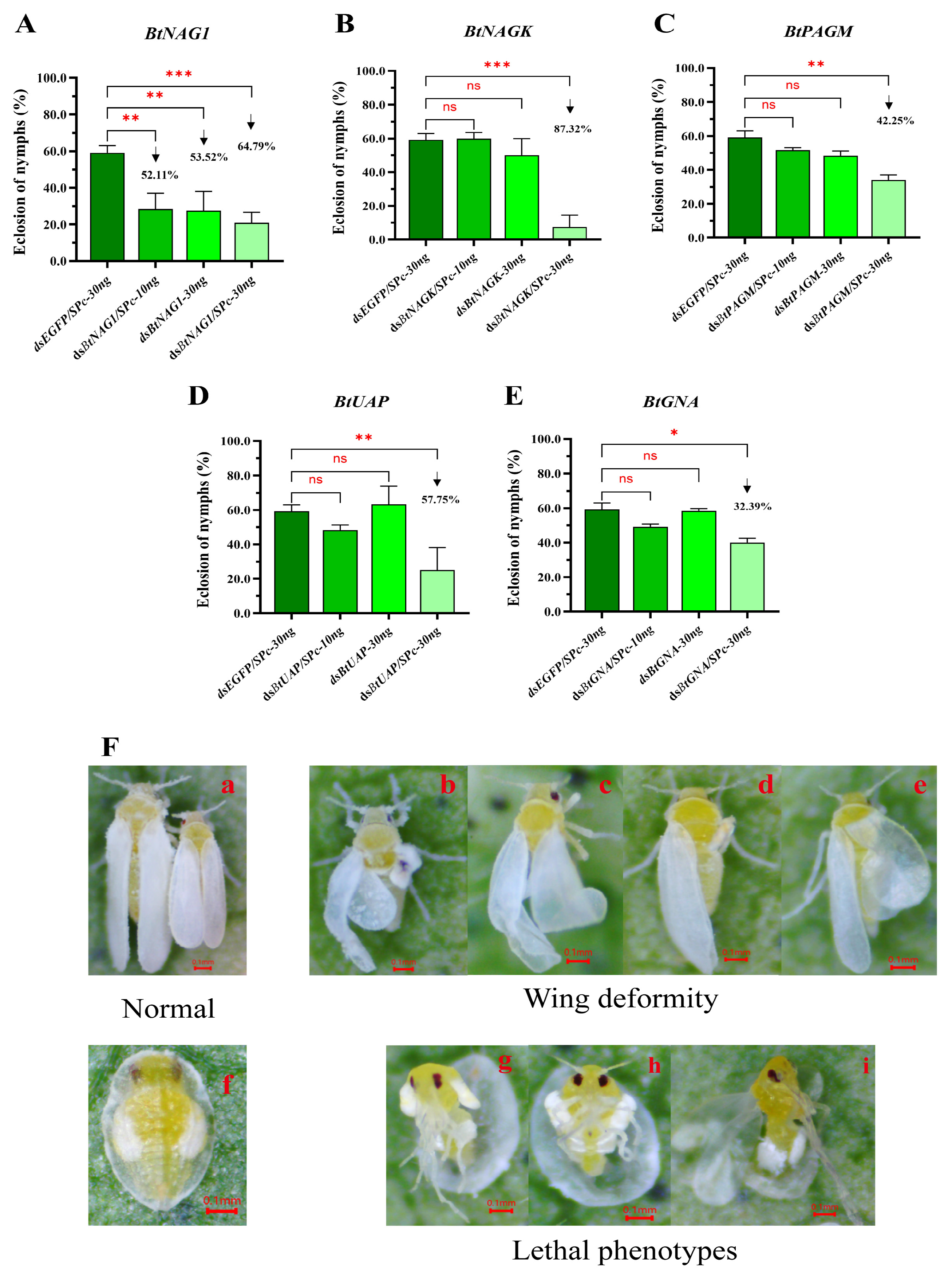 3.5. Mortality and Adult Emergence Rates of Whitefly Nymphs After RNAi