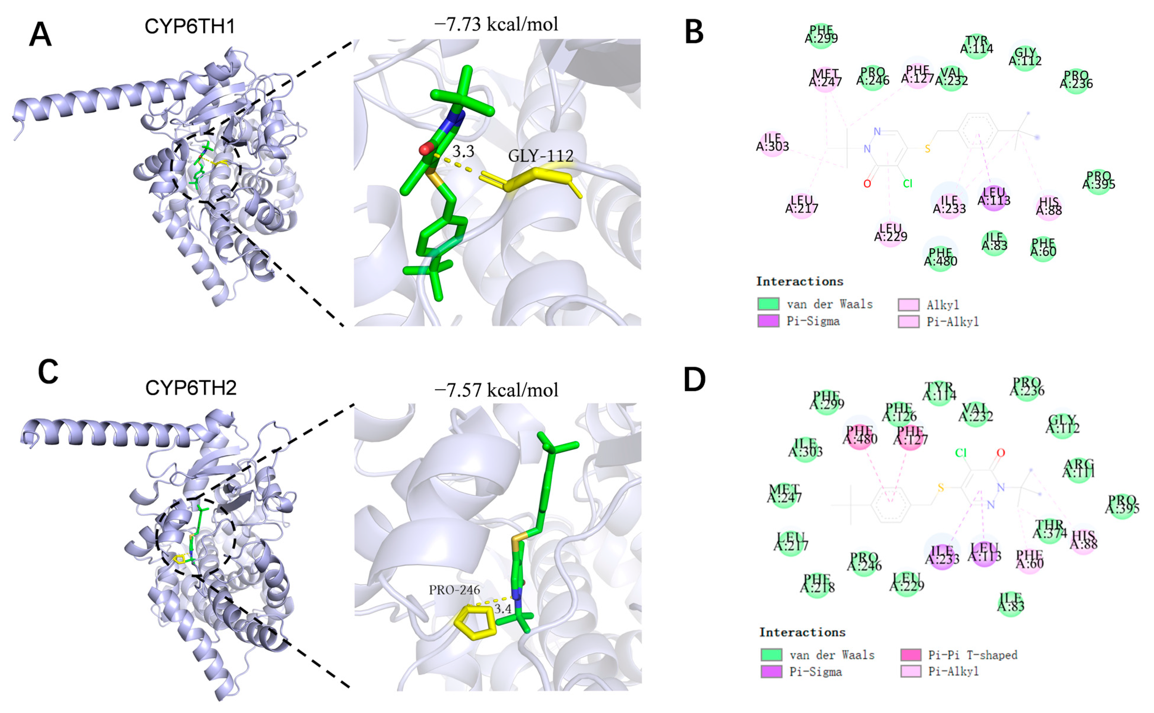 3.5. Predicted Binding of CYP6TH1 and CYP6TH2 with Pyridaben