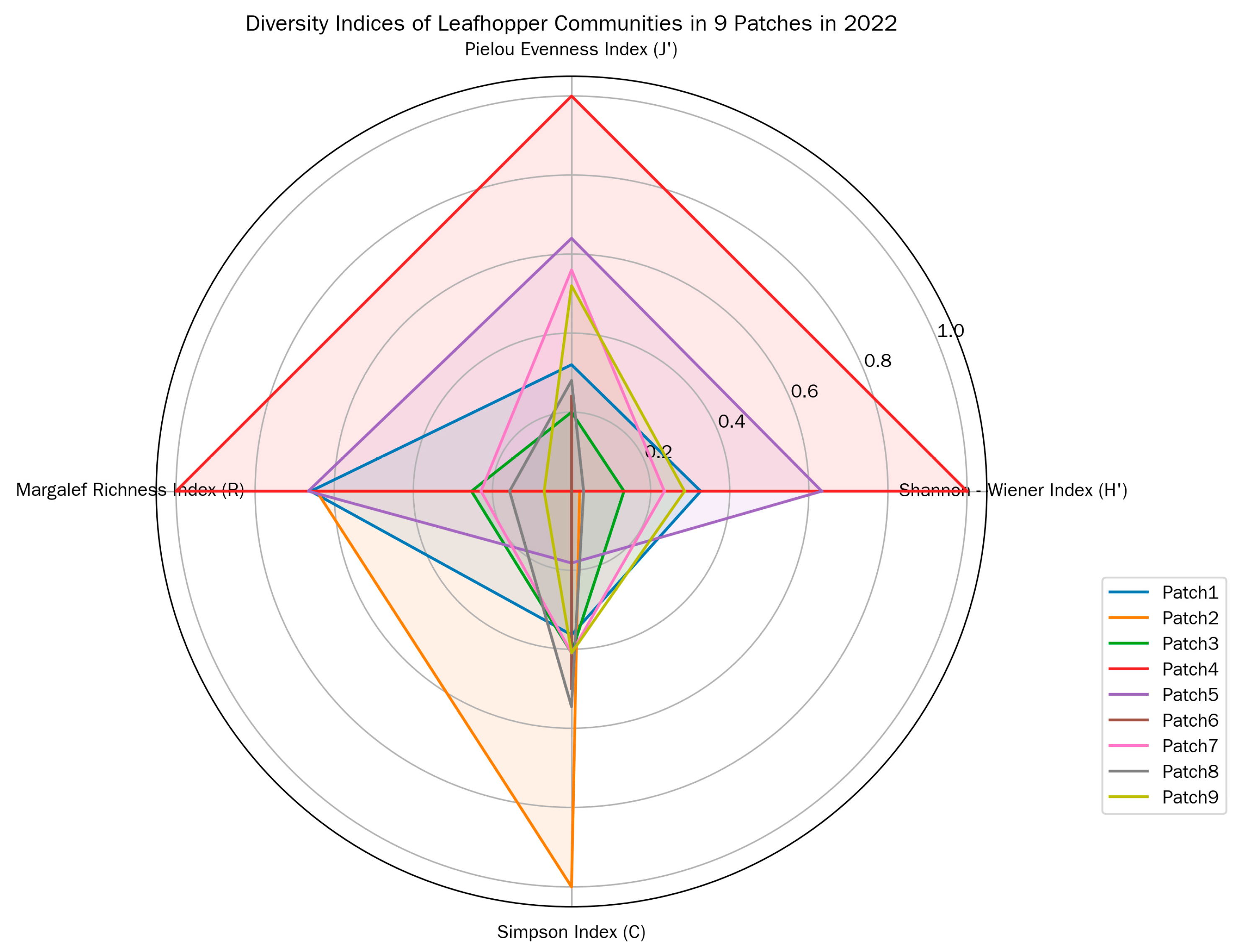 - A reduction in the degree of habitat fragmentation is conducive to increasing the diversity of leafhoppers at the genus level.
