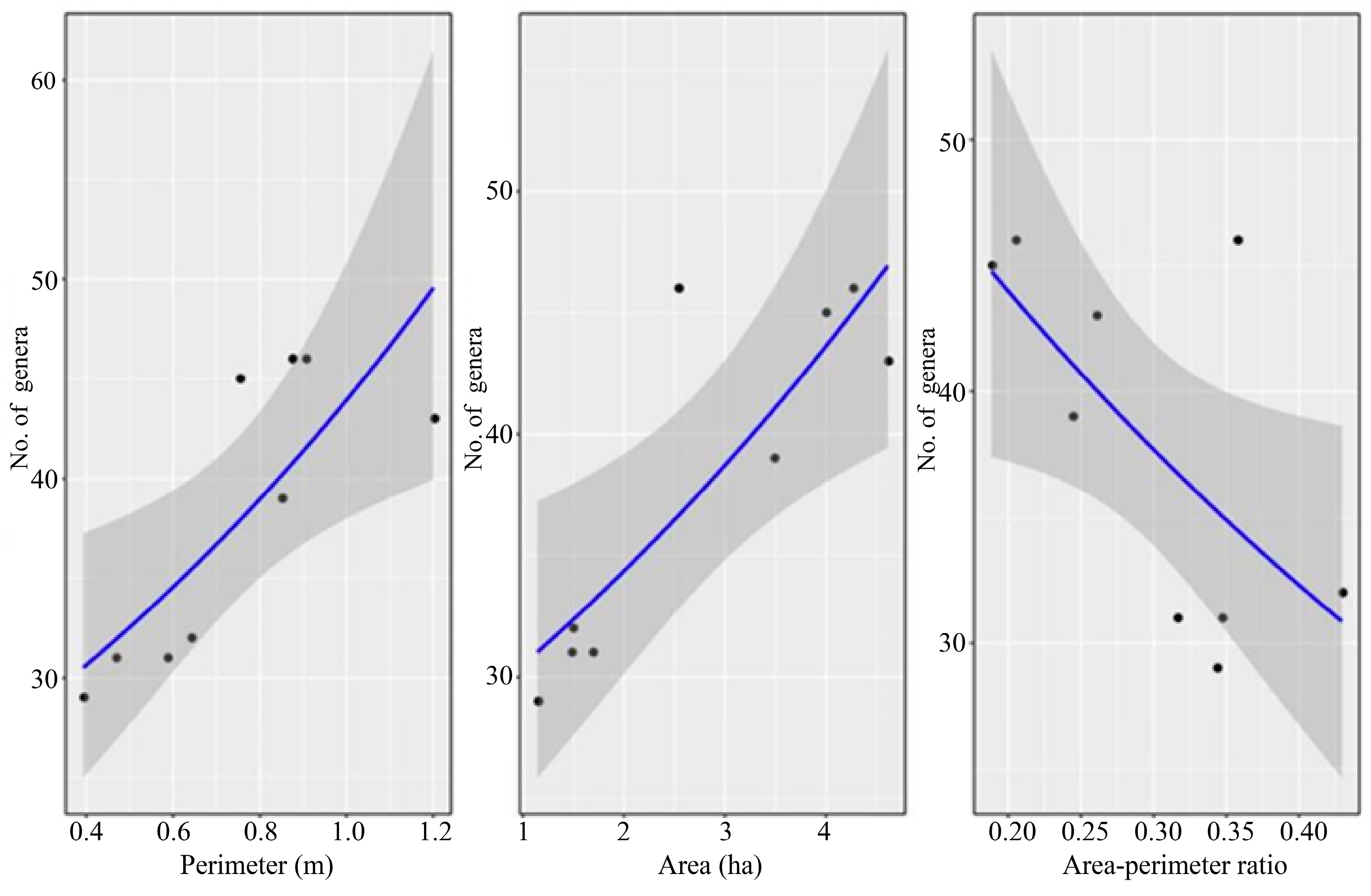 - Habitat patches that are smaller in area or more isolated have fewer leafhopper genera.