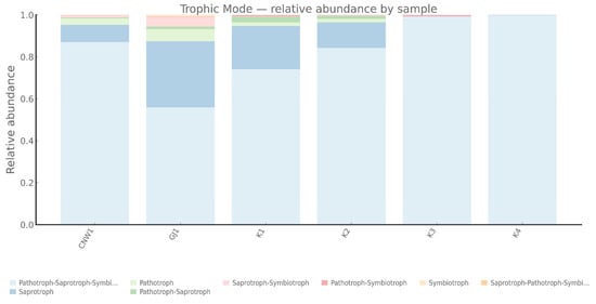 Putative functional profiles were inferred from marker–gene data (FUNGuild (ITS) for fungi and PICRUSt2, Tax4Fun2, and FAPROTAX (16S) for bacteria) recognizing that these are association-based predictions rather than metagenome-resolved functions and are most appropriately interpreted compared across niches.