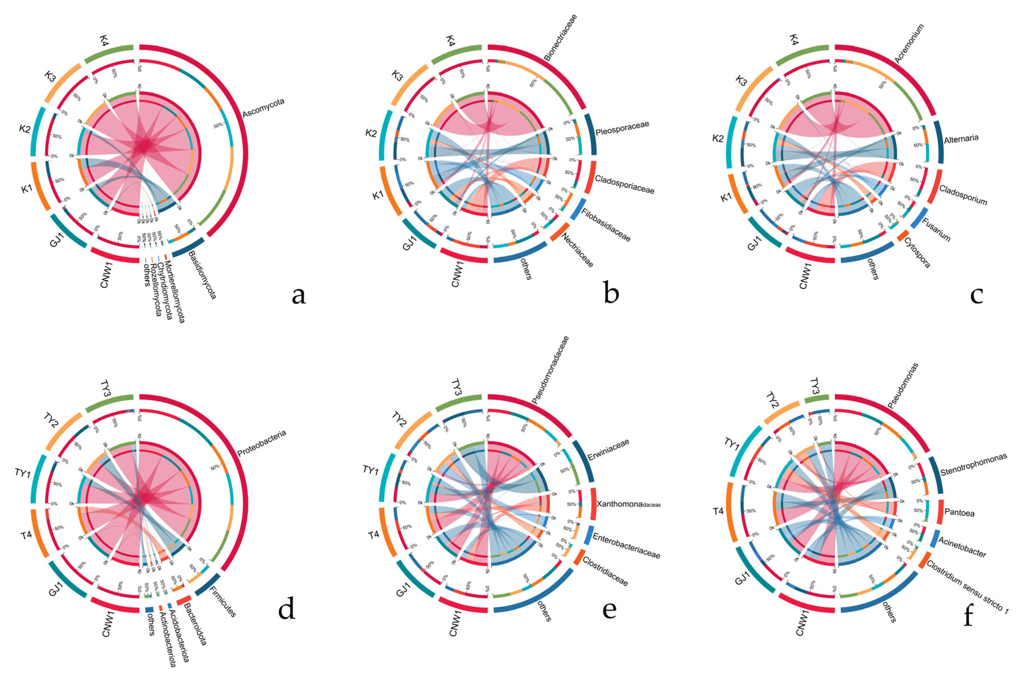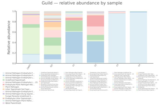 - Nguyen, N.H.; Song, Z.; Bates, S.T.; Branco, S.; Tedersoo, L.; Menke, J.; Schilling, J.S.; Kennedy, P.G. FUNGuild: An open annotation tool for parsing fungal community datasets by ecological guild. Fungal Ecol. 2016, 20, 241–248. [Google Scholar] [CrossRef]