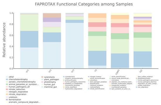 - Sansupa, C.; Wahdan, S.F.M.; Hossen, S.; Disayathanoowat, T.; Wubet, T.; Purahong, W. Can we use functional annotation of prokaryotic taxa (FAPROTAX) to assign the ecological functions of soil bacteria? Appl. Sci. 2021, 11, 688. [Google Scholar] [CrossRef]