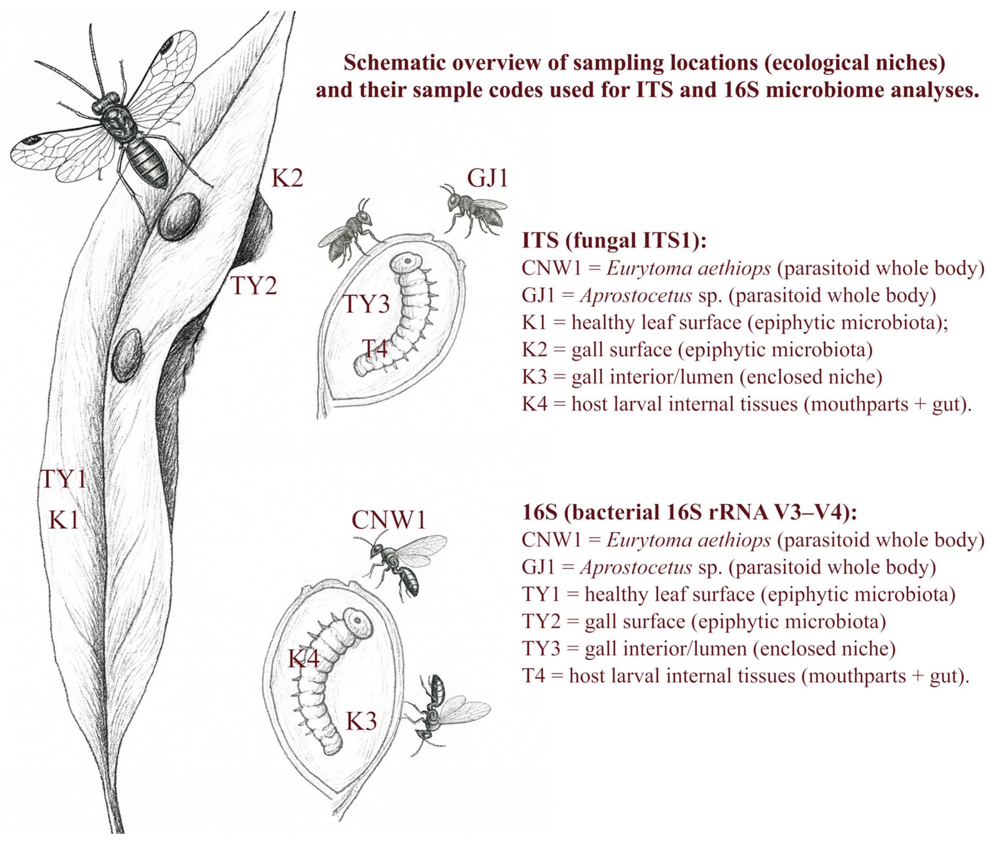 APA StyleNie, Y., Yu, G., & Hu, H. (2026). Niche Differentiation and Predicted Functions of Microbiomes in a Tri-Trophic Willow–Gall (Euura viminalis)–Parasitoid Wasp System. Insects, 17(1), 43. https://doi.org/10.3390/insects17010043