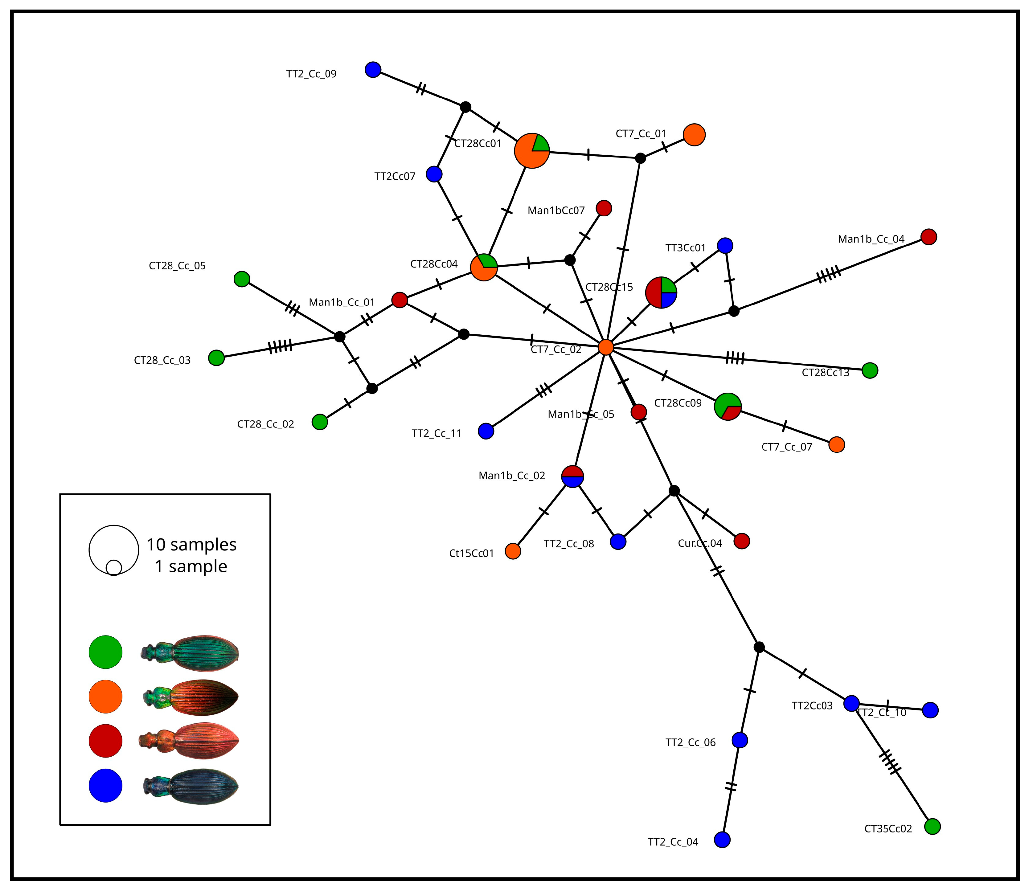 - Leigh, J.W.; Bryant, D.; Nakagawa, S. POPART: Full-feature software for haplotype network construction. Methods Ecol. Evol. 2015, 6, 1110–1116. [Google Scholar] [CrossRef]