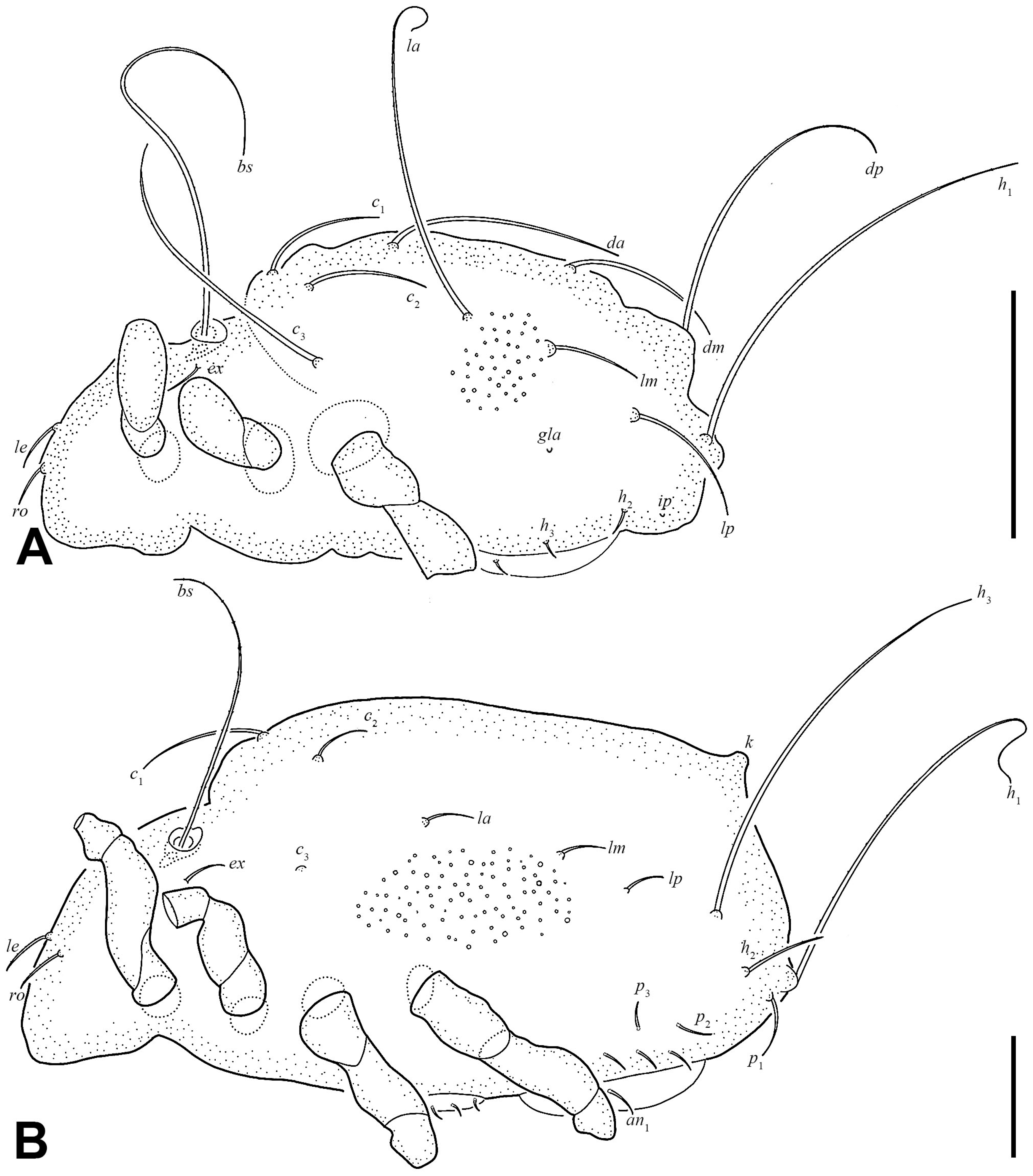 | Notogastral seta c1 length | shorter than c2 | as long as c2 | as long as c2 |