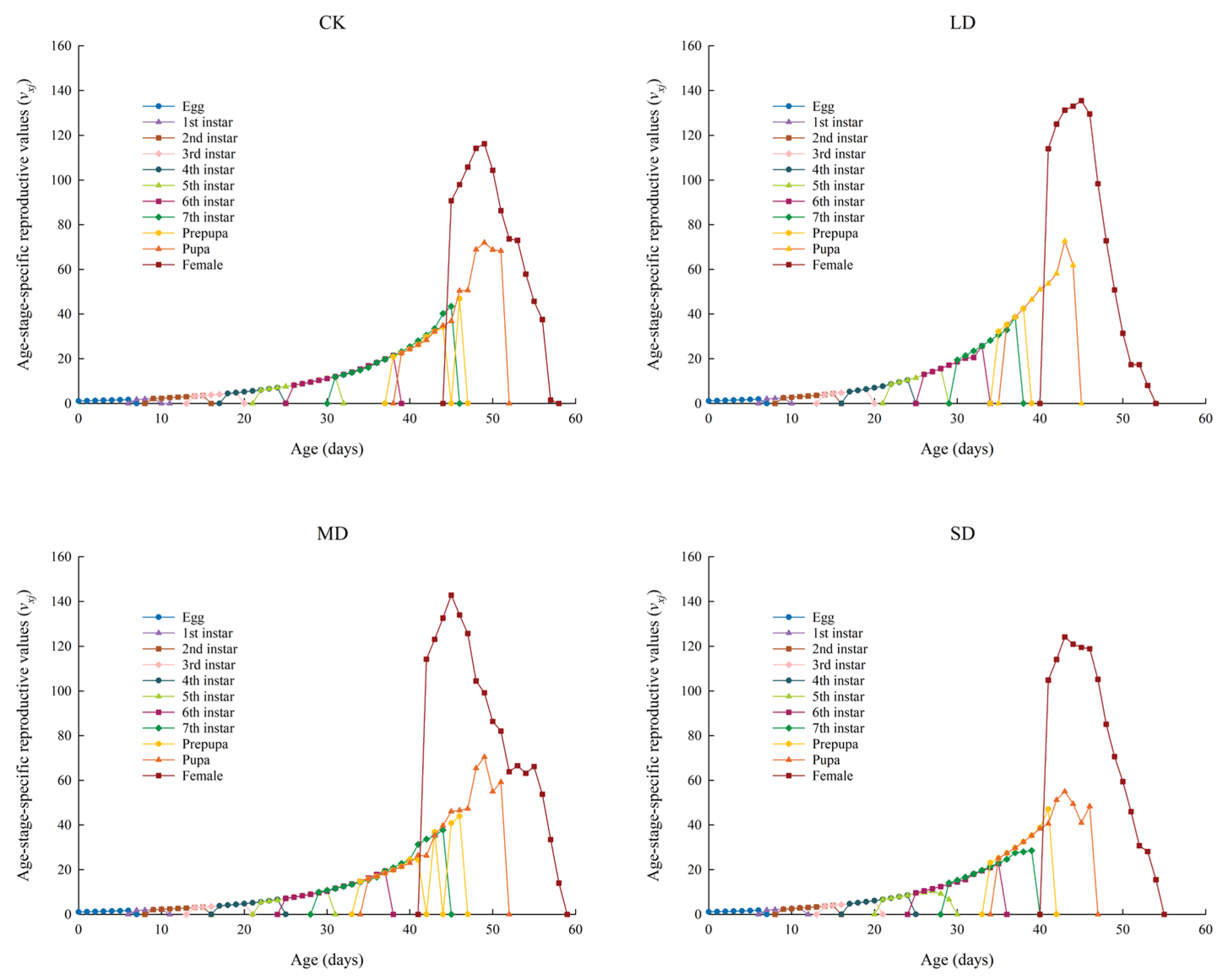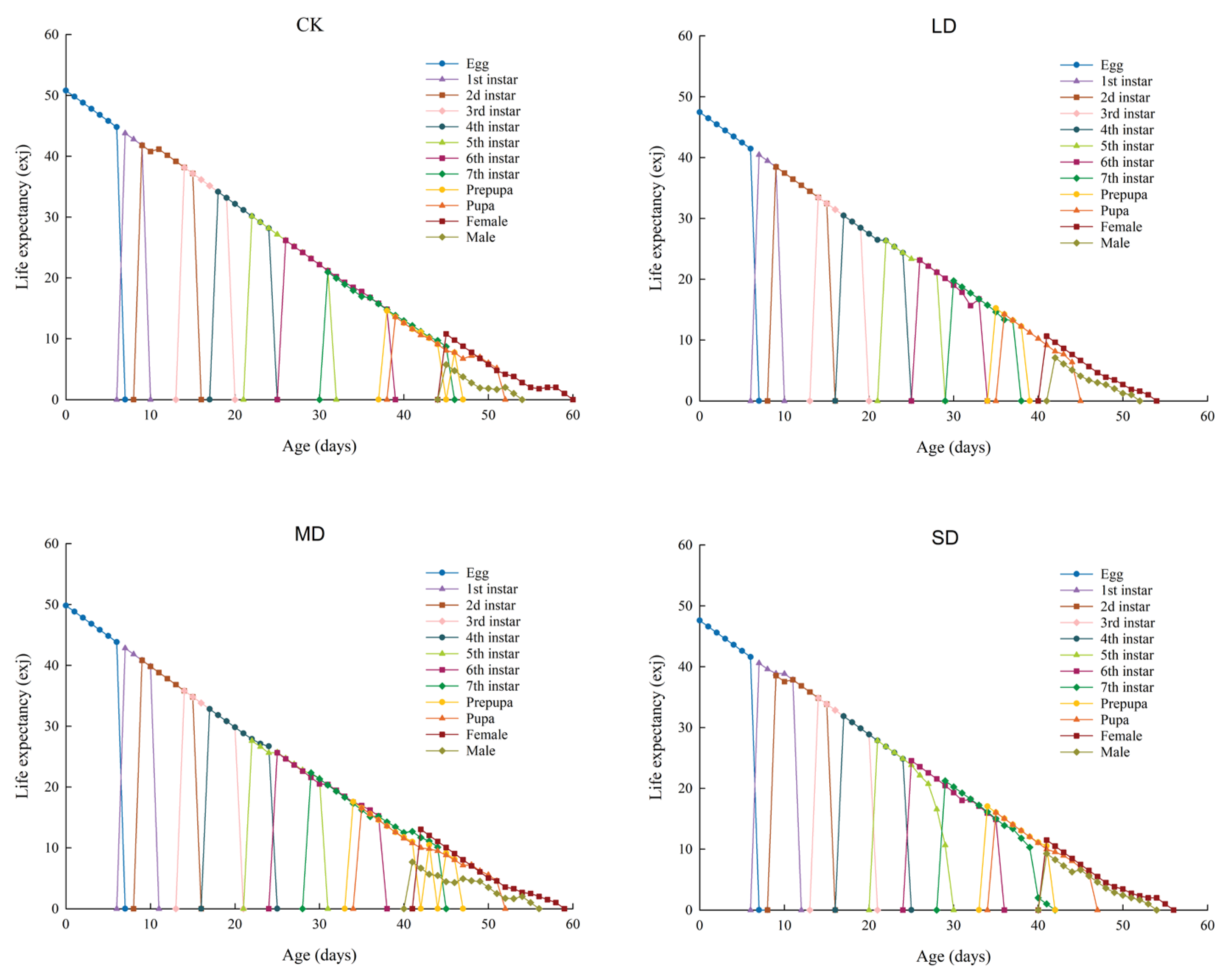 | Development Stage (d) | N | CK | N | LD | N | MD | N | SD |