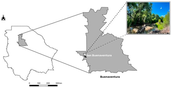 Figure 1. Geographic location of the collection site in Chihuahua, México. The map shows the state of Chihuahua, with the Buenaventura municipality shaded in dark gray, and the city of San Buenaventura highlighted in a darker shade.