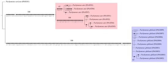- Swofford, D.L. PAUP*: Phylogenetic Analysis Using Parsimony (and Other Methods), Version 4; Sinauer Associates: Sunderland, UK, 2002. [Google Scholar]