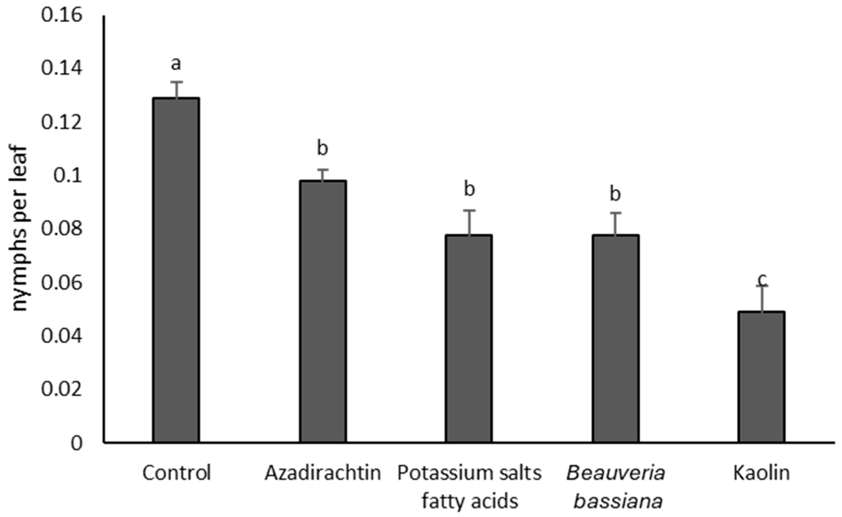 - Kaolin (Surround®—Serbios s.r.l, Rovigo, Italy; Polvere di Roccia®, Biogard—CBC Europe, Bergamo, Italy), a 100% natural aluminum silicate clay formulation used as a physical particle film that interferes with host location and reduces leafhopper feeding behavior.