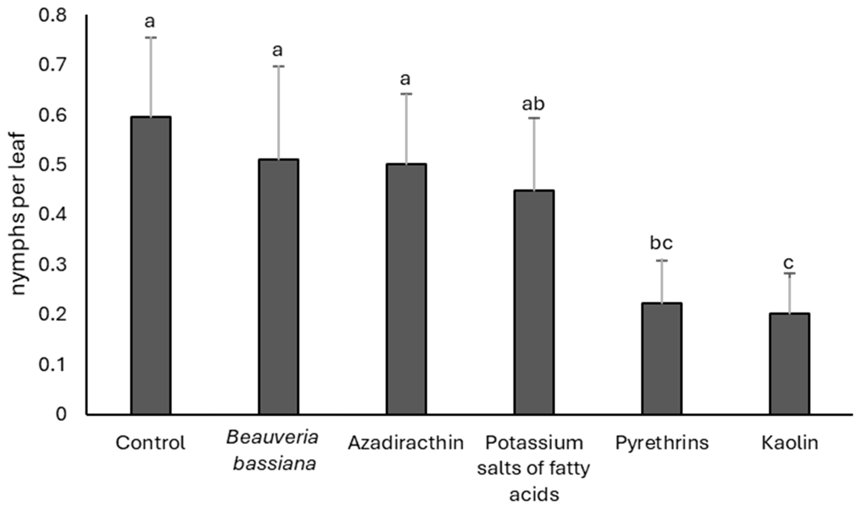 Chicago/Turabian StylePrazaru, Stefan Cristian, Luigi Forlin, Leonardo Cera, Lisa D’Ambrogio, Alberto Pozzebon, and Carlo Duso. 2026. "Natural Products for the Control of Scaphoideus titanus in Vineyards: A Summary of Five-Year Field Trials" Insects 17, no. 1: 83. https://doi.org/10.3390/insects17010083