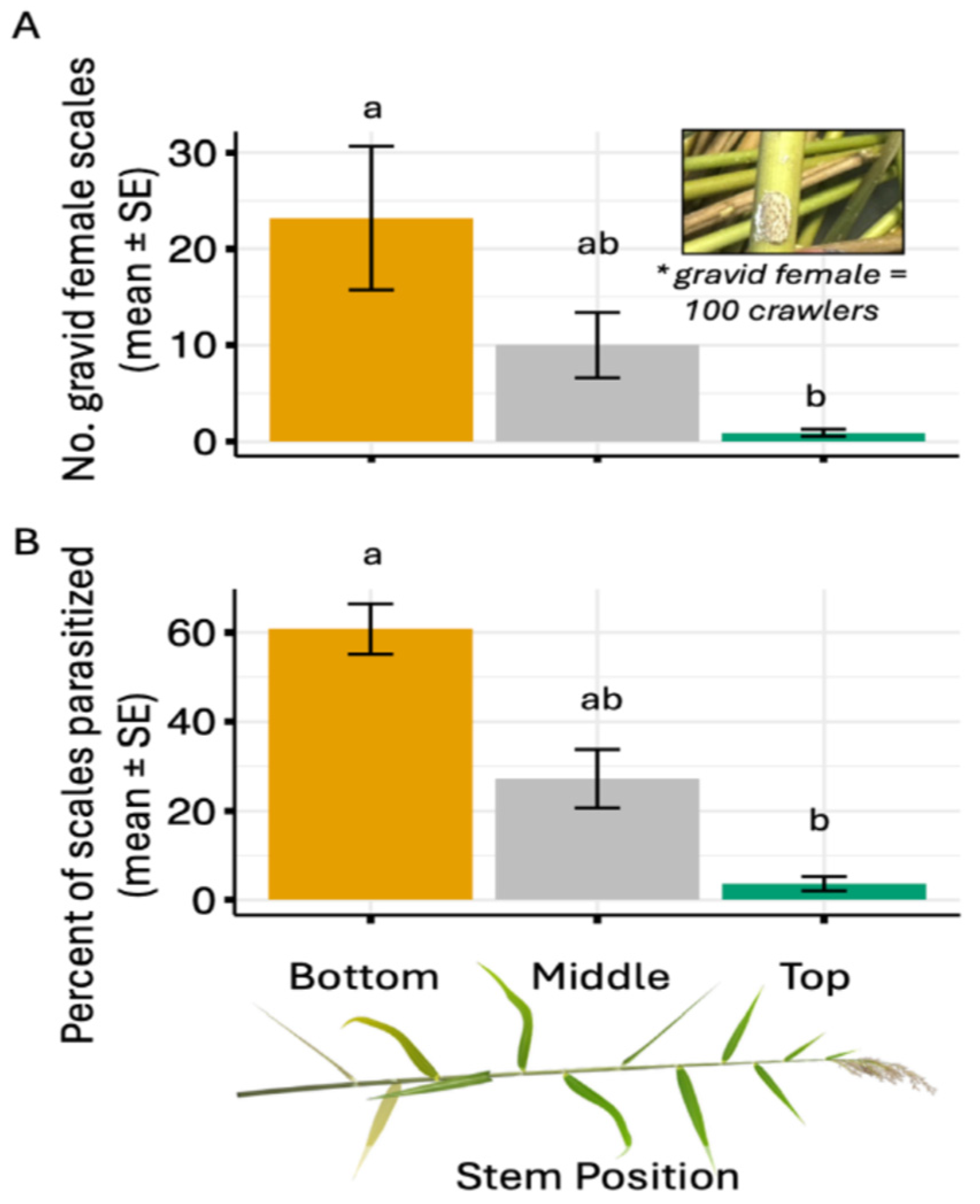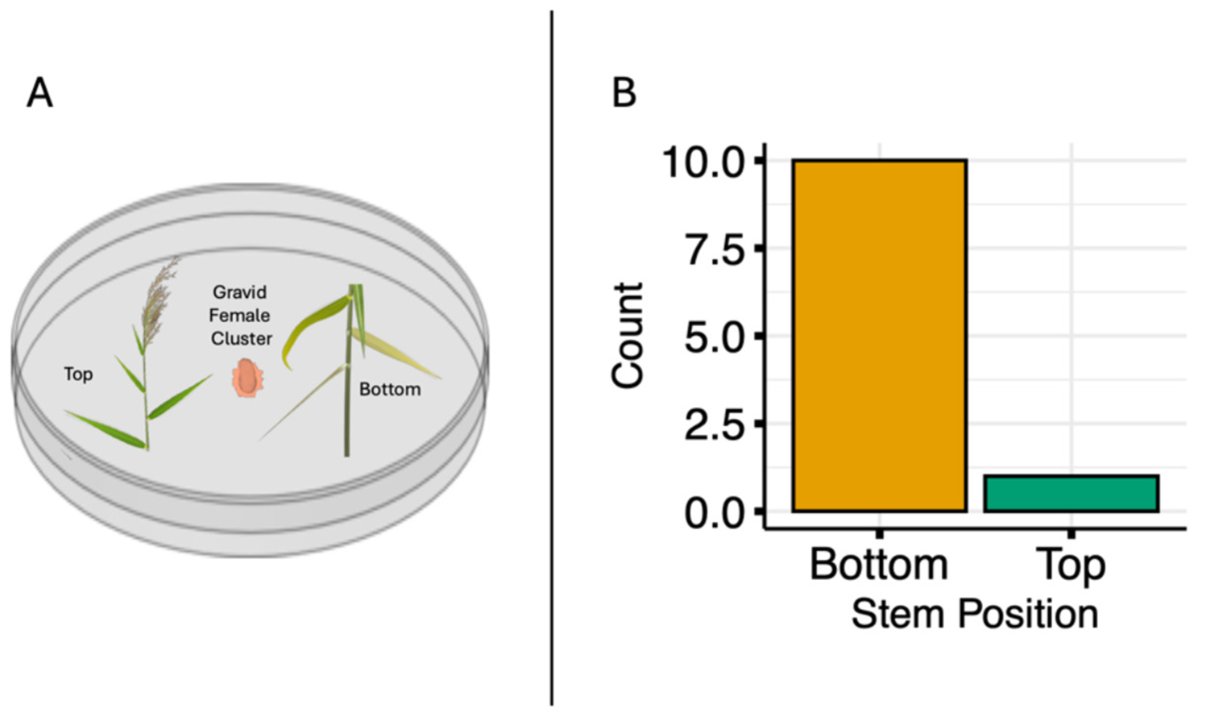 Glassmire AE, Cronin JT, Diaz R, DeSoto A, Shapiro E, Gaffke A, Snook JS, Stout M. Plant Chemistry and Enemy Pressure Shape Within-Stem Distribution of the Invasive Scale Nipponaclerda biwakoensis. Insects. 2026; 17(1):9. https://doi.org/10.3390/insects17010009