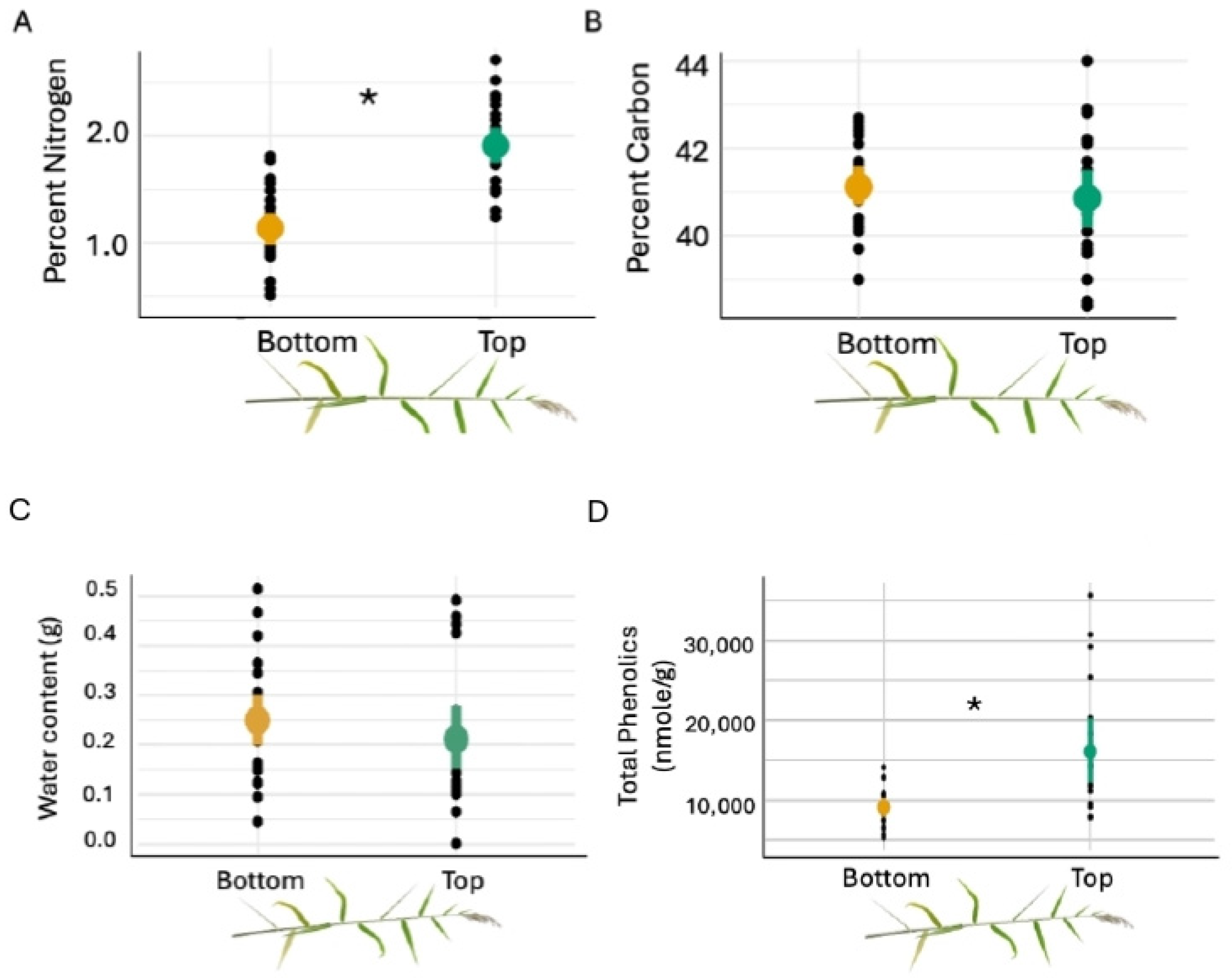 3.2. Plant Nutritional and Defensive Traits of P. australis Stems