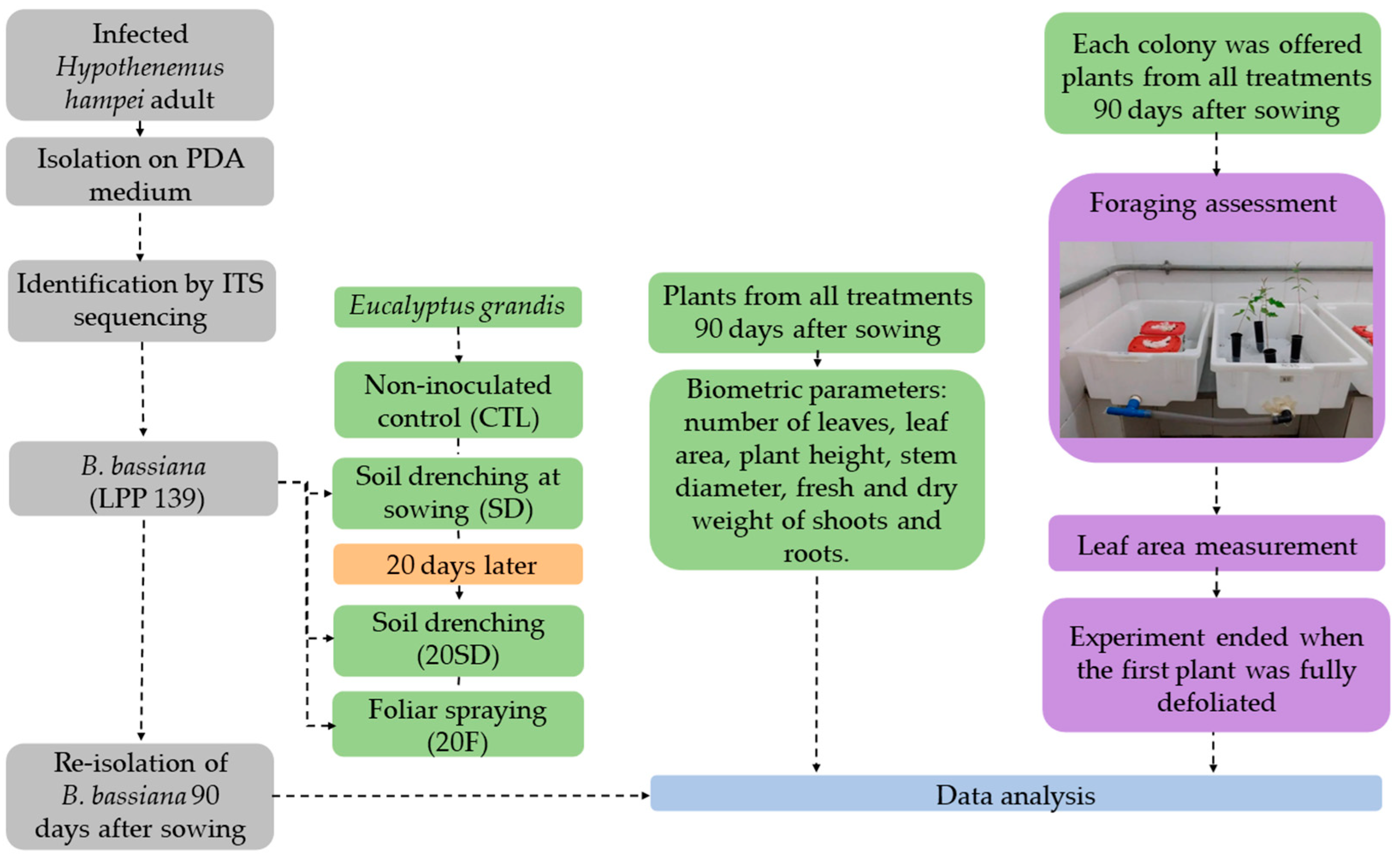 APA StyleQueiroz, R. R. d. S., Teodoro, T. B. P., Carolino, A. T., Bitencourt, R. d. O. B., & Samuels, R. I. (2026). Application Method Determines Effects of Beauveria bassiana on Eucalyptus grandis Growth and Leaf-Cutting Ant Foraging. Insects, 17(2), 134. https://doi.org/10.3390/insects17020134