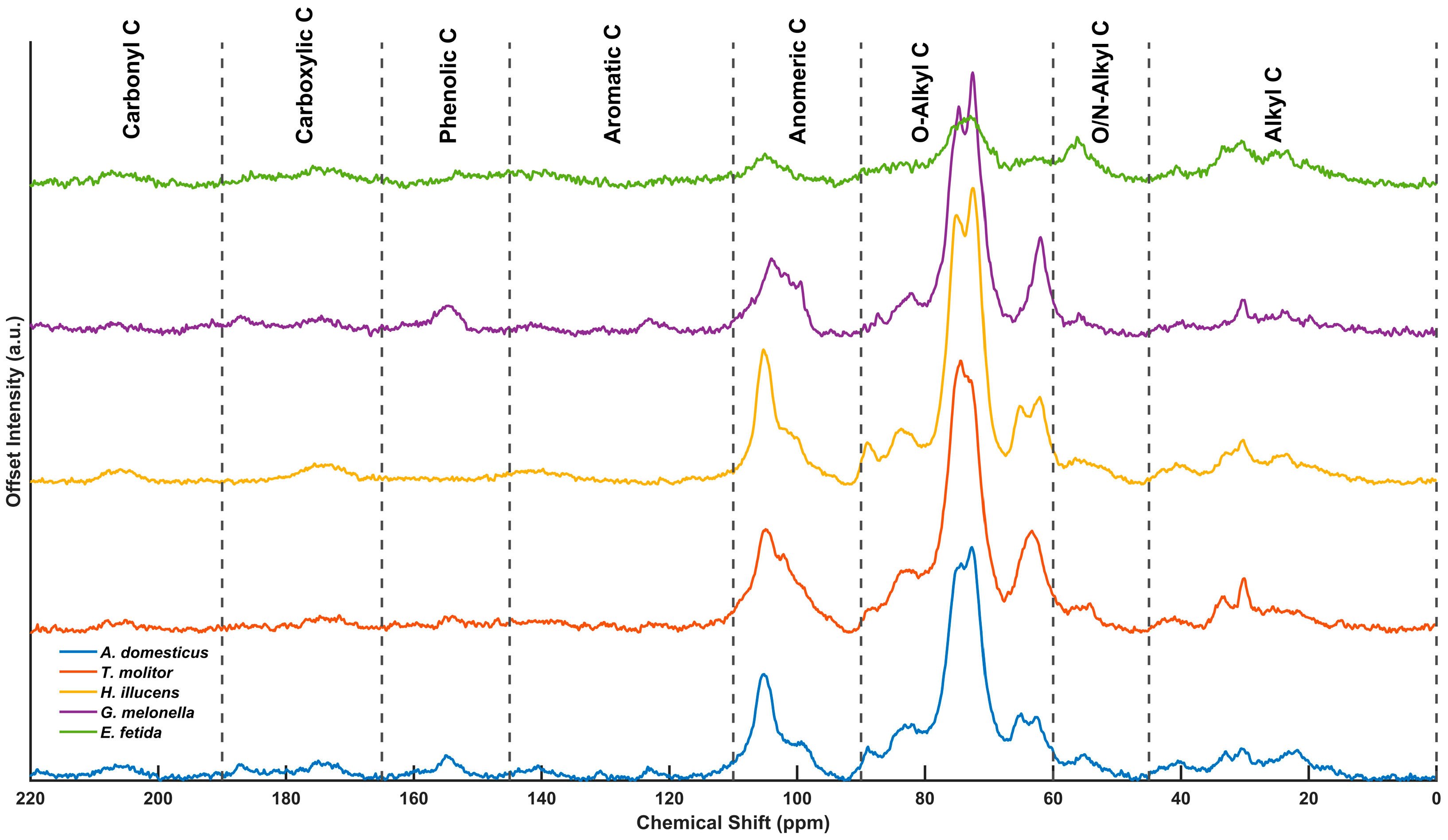 | H. illucens | 66.01 | 24.87 | 4.75 | 3.24 | 0.51 |