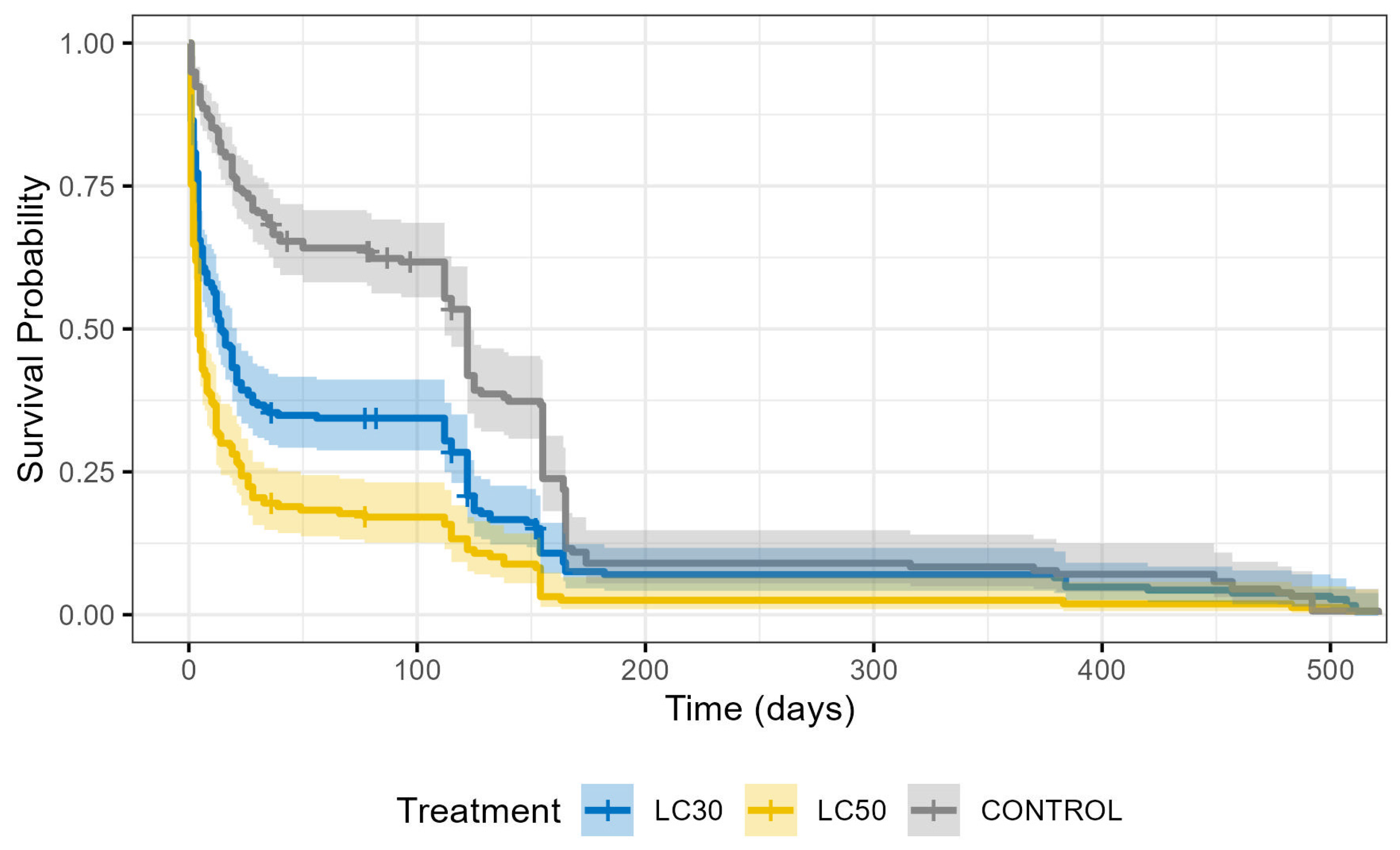 | Treatment Group | LT50 (CI) | LT90 (CI) |
