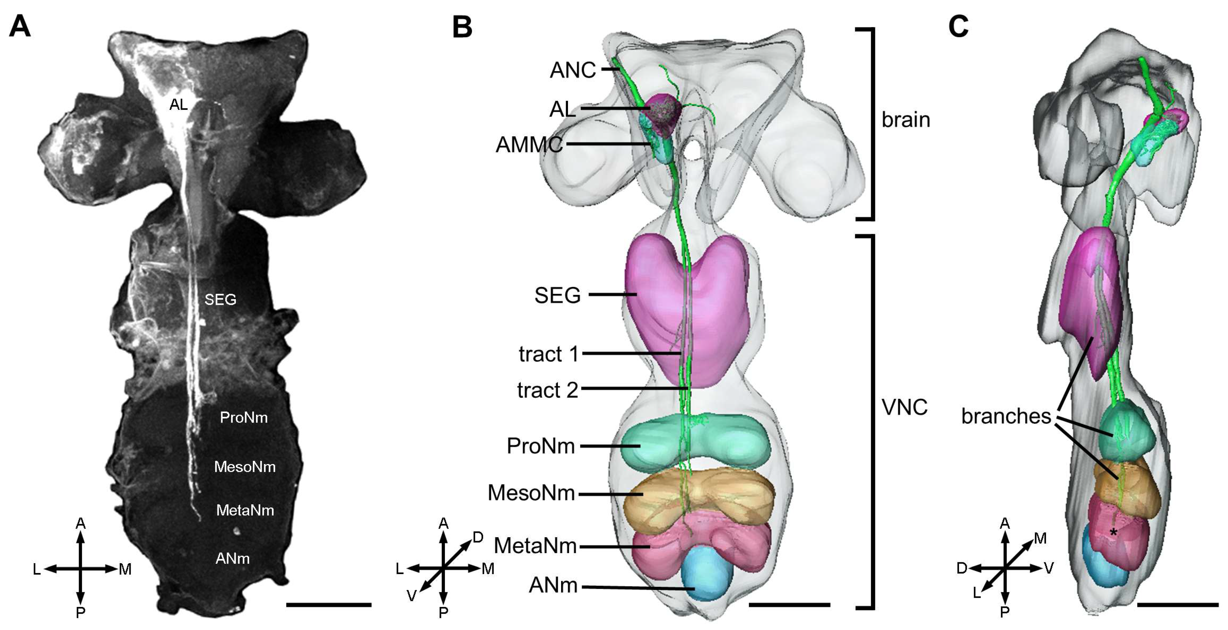 3.5. Secondary Projection Pattern of Antennal Neurons in the Ventral Nerve Cord