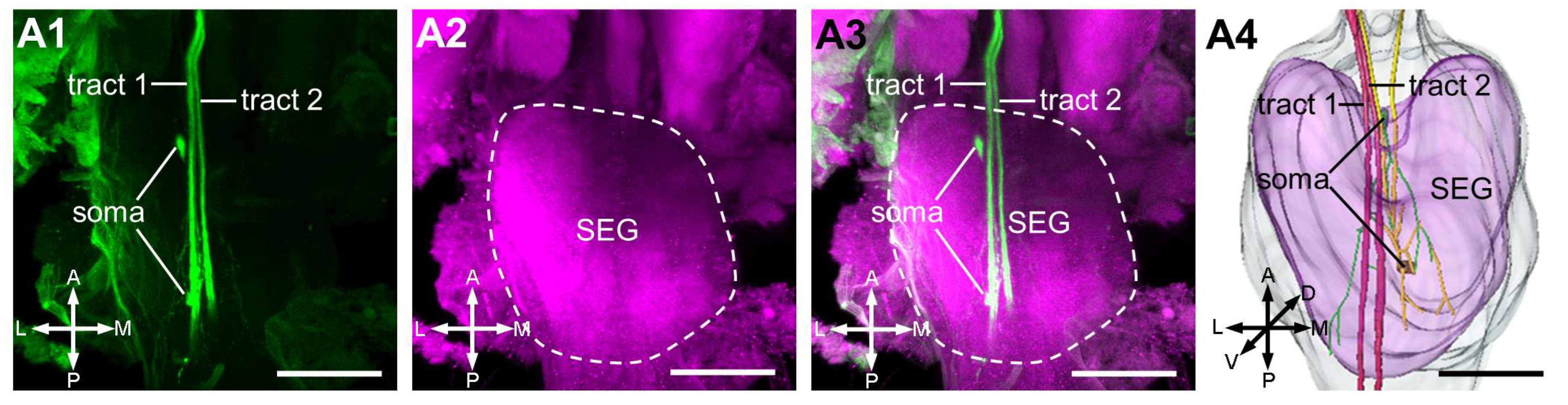 3.1. Overview of the Antennal-Axon Terminals in the Central Nervous System