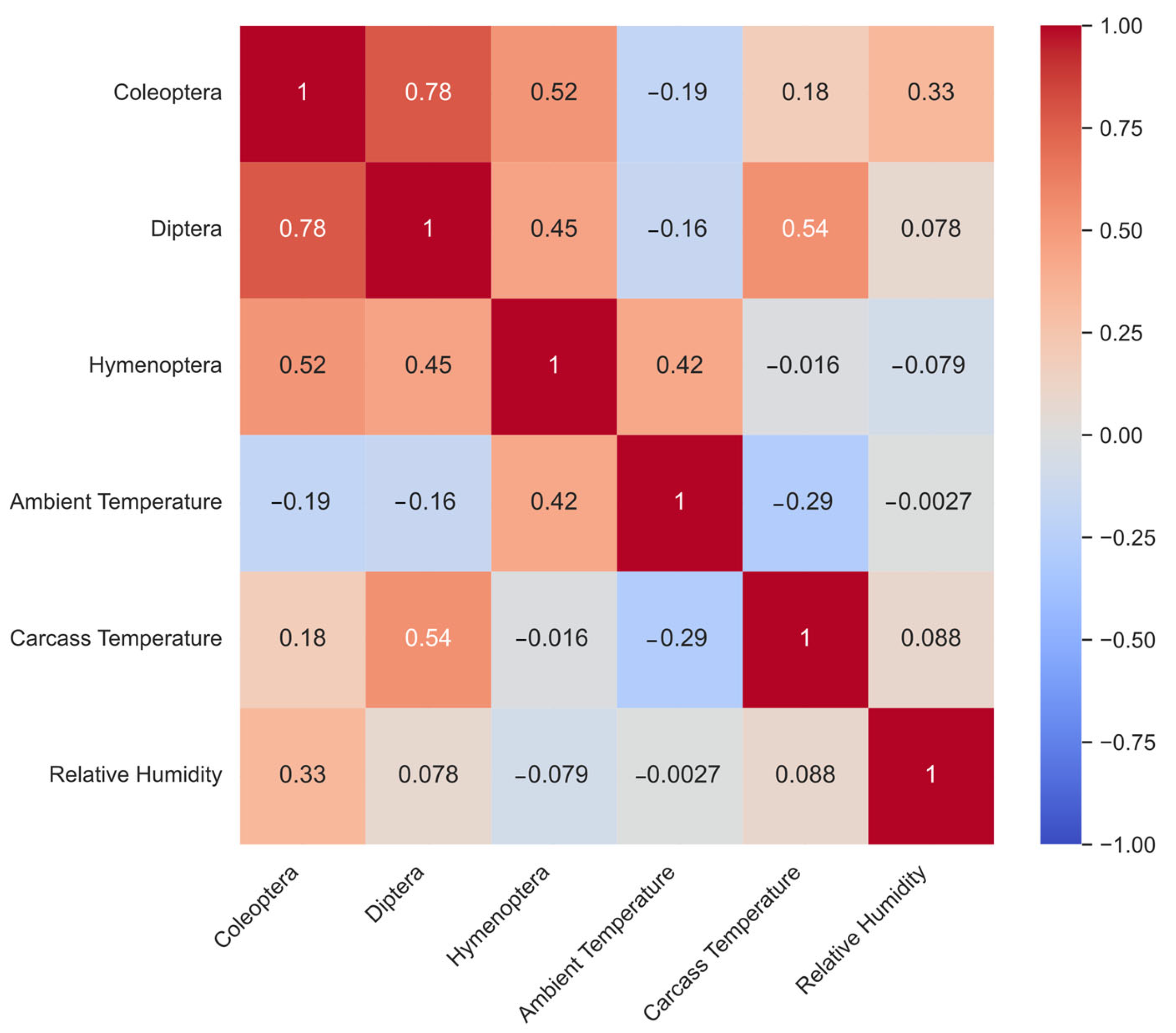 - Al-Khalifa, M.S.; Mashaly, A.M.A.; Al-Qahtani, A.R. Ant-mediated modification of carrion insect succession and its forensic implications. J. Med. Entomol. 2021, 58, 843–852. [Google Scholar]