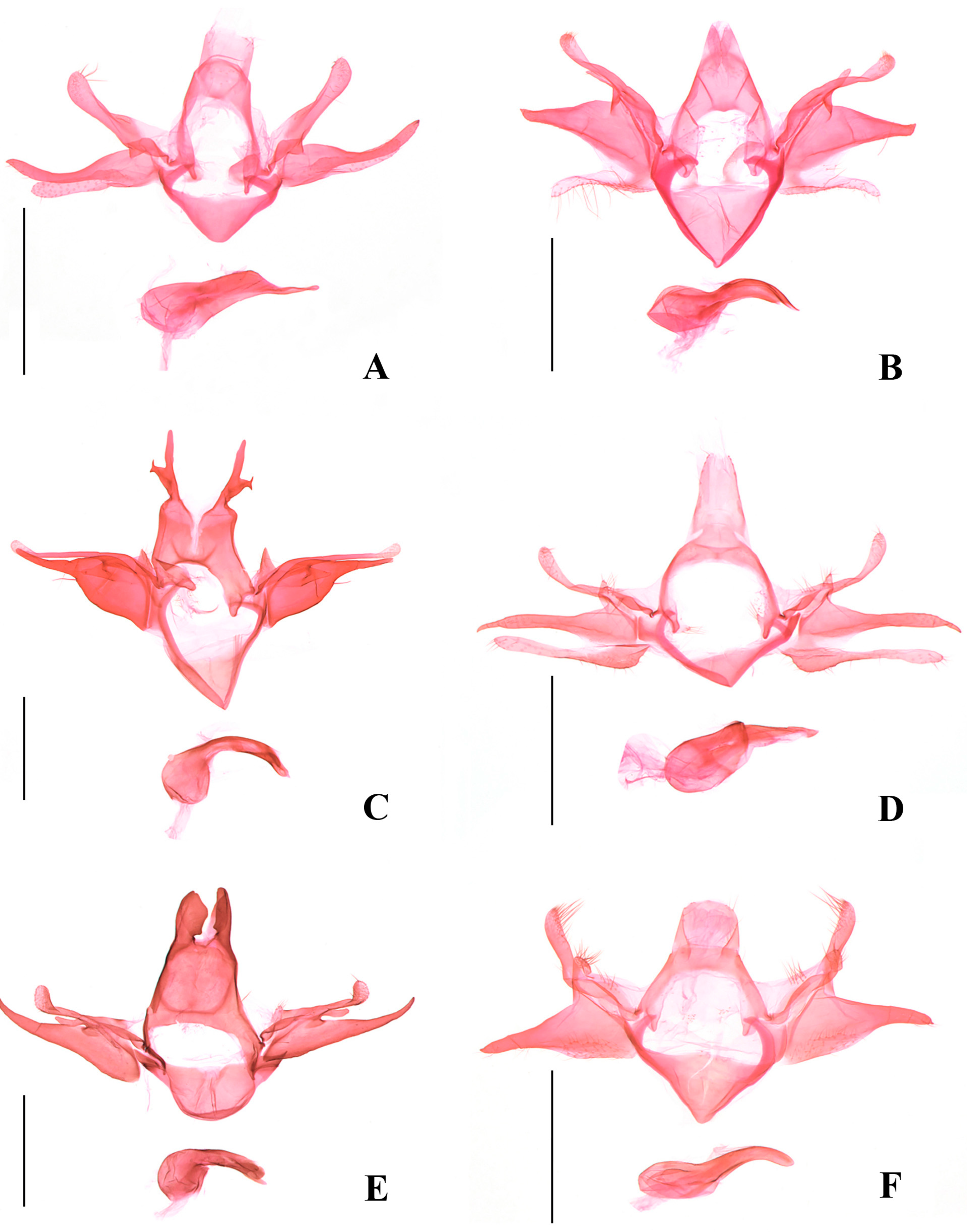 Uncus without lateral process, sacculus semicircular and rounded on anterior margin (this paper,