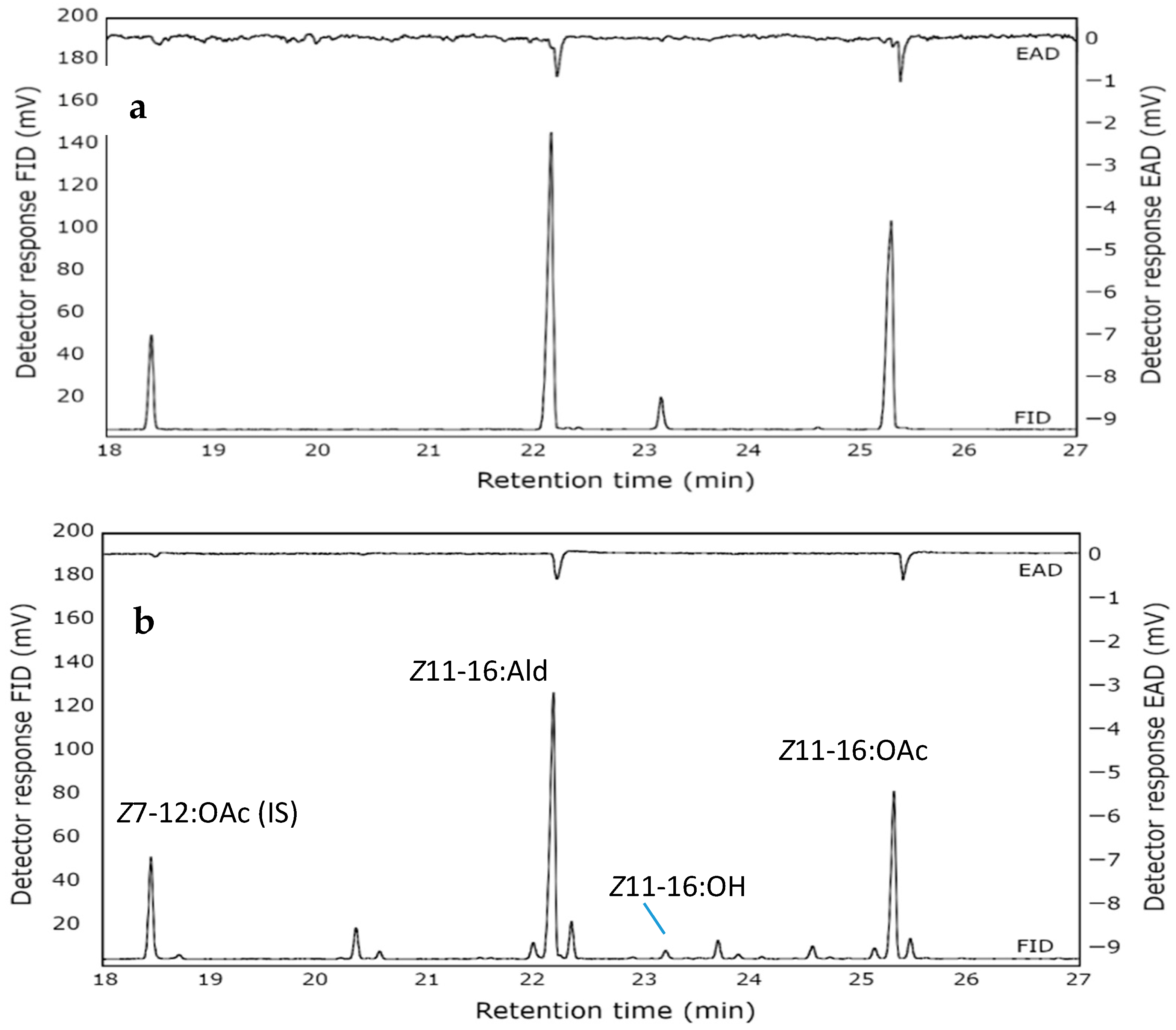 - Tamaki, Y.; Kawasaki, K.; Yamada, H.; Koshihara, T.; Osaki, N.; Ando, T.; Yoshida, S.; Kakinohana, H. (Z)-11-Hexadecenal and (Z)-11-hexadecenyl acetate: Sex-pheromone components of the diamondback moth (Lepidoptera: Plutellidae). Appl. Entomol. Zool. 1977, 12, 208–210. [Google Scholar] [CrossRef]